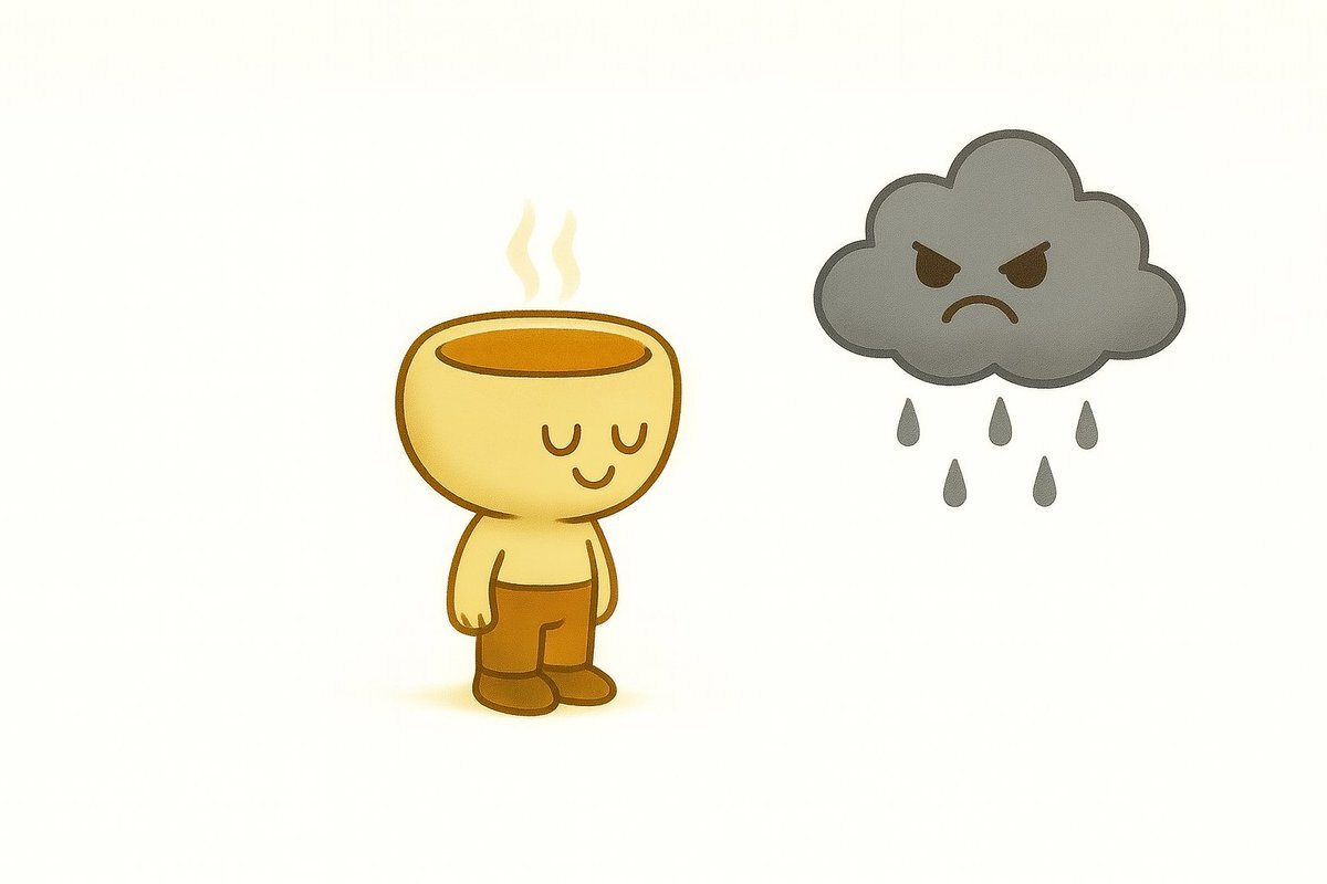 悪い雲さん 「へっへっへっ 地面を覆い隠して、雨も降らせちゃうぜ☁️」 農家さん 「やっと雨がきてくれた、ありがたいありがたい🌾」 #スープの世界 #哲学 # #東洋思想 #AIと東洋哲学ごっこ #やさしい哲学 #縁起 #日常の中の哲学 #ことばの灯り pic.x.com/GeitRfZ4wT