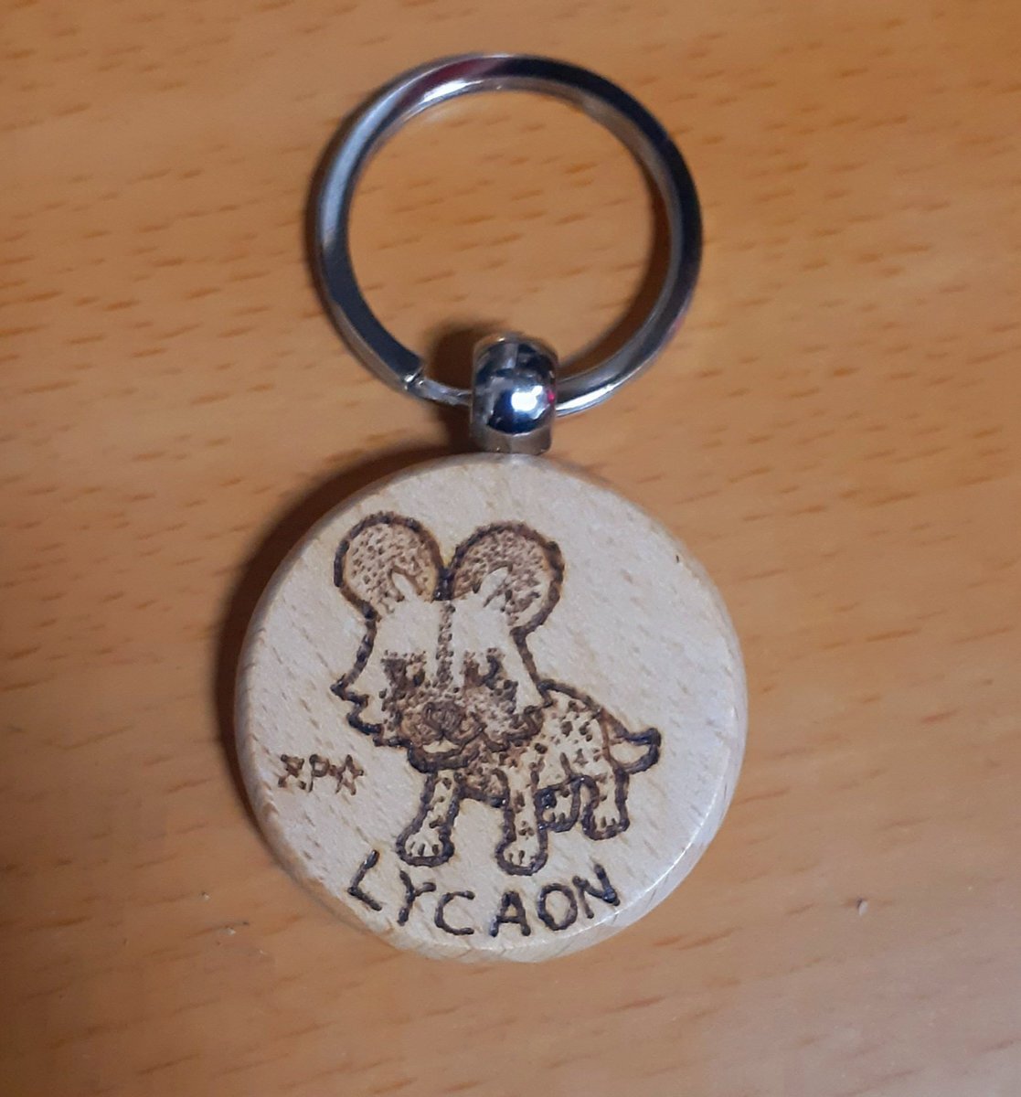 リカオンの手描き木製キーリング ※熱ペンで焦がして描いてます(ウッドバーニング/pyrography) 10/26 #ズーラシアフェス 11/9 #ブラックアウト 12/6 #エキゾチックミュージアム 12/7 #ジャングルハンター #リカオン (African wild dog) #zpwb
