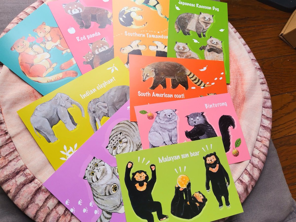 🌟ポストカード イチオシはかわいく描けて大満足のアナグマです。すみませんアフリカ全然関係ない😂 今回のイベント記念で一つ作りたくて、アフリカサバンナ4種混合ポストカードもあります🦓 #ズーラシアフェス pic.x.com/3LdiWhzqb9