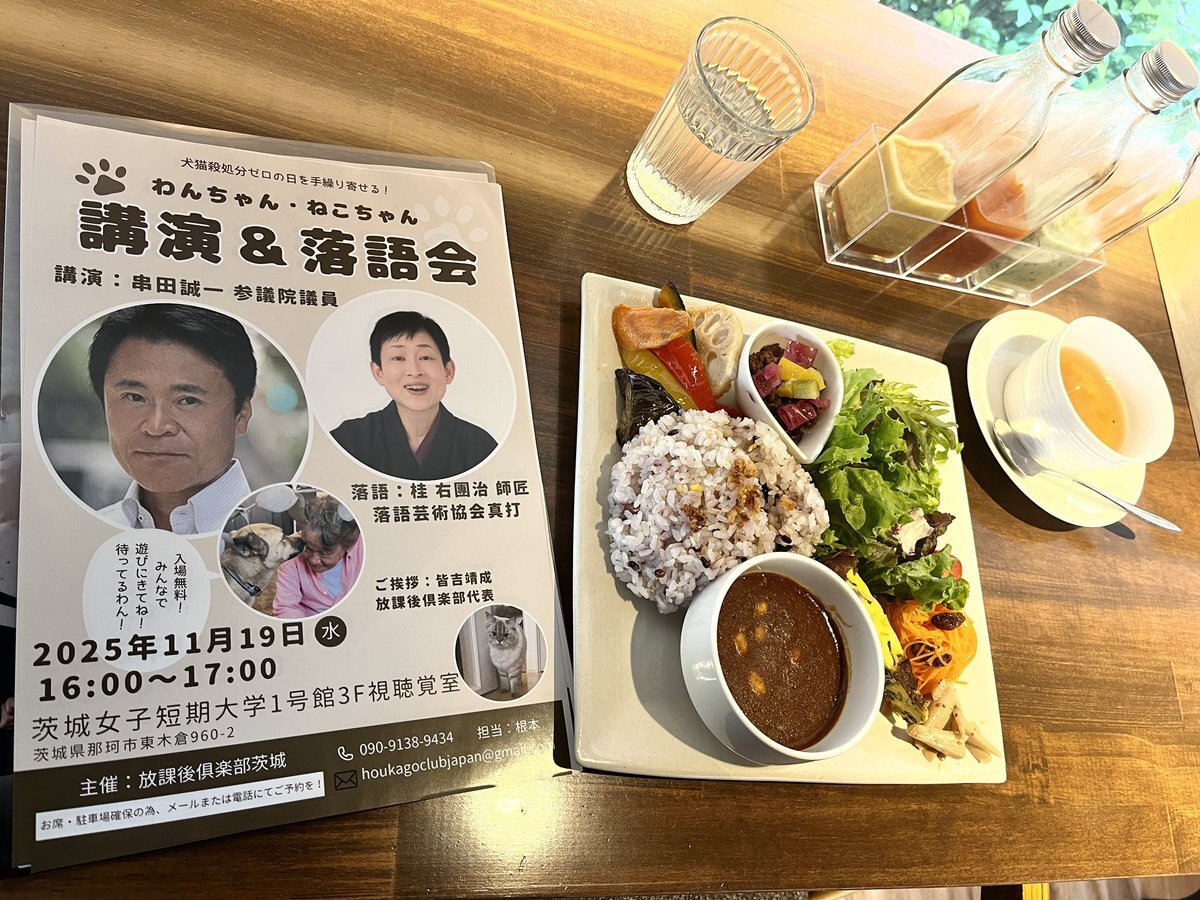 くれよんカフェで行われています星野由美子さんライブにお越しのお客様にチラシを手にしていただきました。ありがとうございます😊 #放課後倶楽部 #ゼロの日を手繰り寄せる #串田誠一 #桂右團治 #犬猫 #保護 #茨城県 #茨城女子短期大学 pic.x.com/hTNynufJKa