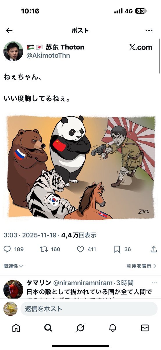 🇨🇳の🐼も、🇷🇺の🐻もわかる。 🇰🇷の🐯もちょっとはわかる。😌 しかし、北朝鮮🇰🇵が🐴なん⁉️ 🐴🦌ってことかね?😂🤣🤣 #北朝鮮 #中国は侵略国家 #中国 #ロシアは侵略国家 #ロシア #韓国はレッドチーム #韓国 #北朝鮮はアホ #北朝鮮はアタオカ #北朝鮮 #ソトン秋元はれいわ信者 #ソトン秋元 x.com/akimotothn/sta…