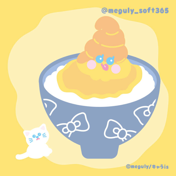 今日は #たまごかけごはんの日🥚 たまごかけごはんの たまごになりきる ソフトクリームのあたまくん🍦 あたまくん、それは ソフトクリームかけごはんだよ👀 #今日は何の日 #イラスト #illustration #りぼんぱ~ら~のファンシーイラスト #ソフトクリームのあたまくん #キャラis pic.x.com/irwKeGA4gj
