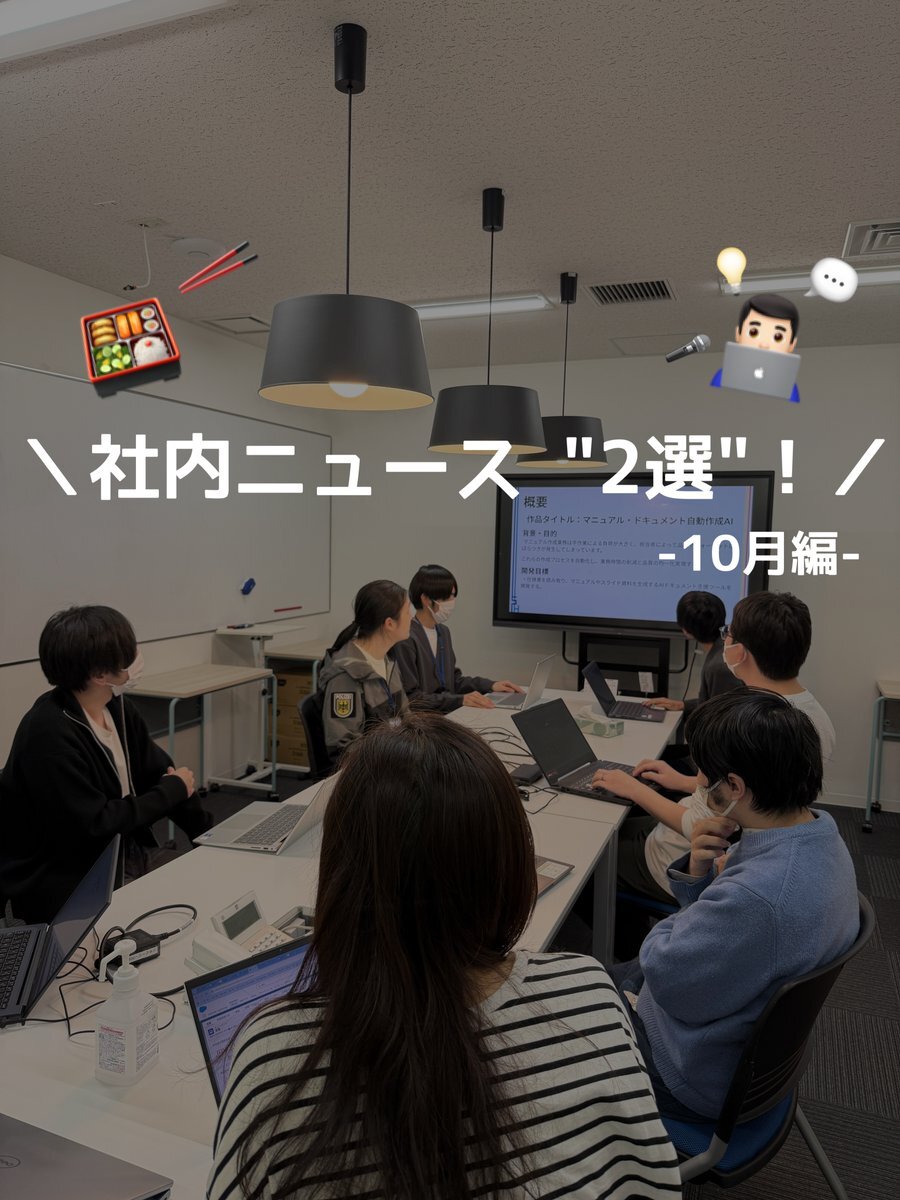 \社内ニュース2選!-10月編🍁-/ ①10/2 内定式後は、恒例の「うなぎランチ」へ! ②10/31 HALインターン成果発表会💻 先輩2名も参加し、実際のコードを見ながら様々なアドバイスが交わされました! #社内ニュース #うなぎ #インターン #成果発表