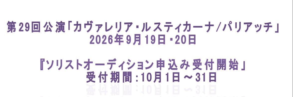 『第29回公演「パリアッチ」「カヴァレリア・ルスティカーナ」ソリストオーディション受験申込』参加希望者は期間内に、所定のフォームから登録のこと フォームアドレスはこちら docs.google.com/forms/d/1tFFcw… 詳細は調布市民オペラ振興会ホームページ