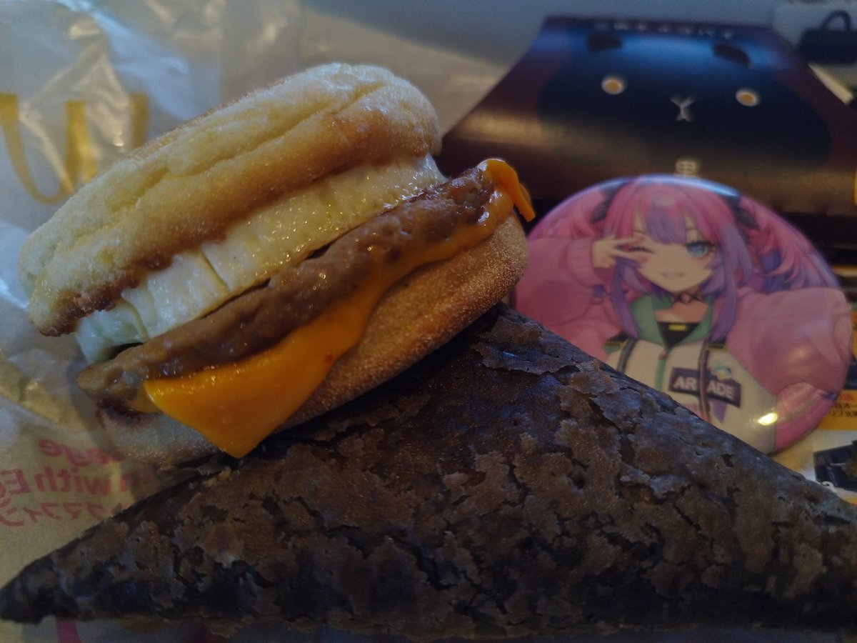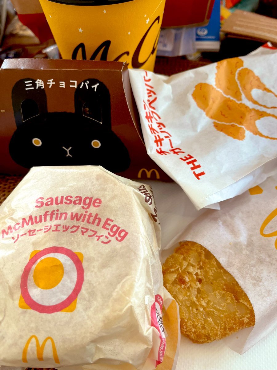 返信先:@McDonaldsJapan他4人駆け込みで食べた #朝マック は基本 #ソーセージエッグマフィン。 #チキチキンTHEガーリックペッパー やっぱりおいしい。 #三角チョコパイ のうさぎかわいい。 pic.x.com/JTw6ZjQm8A x.com/shmp58/status/…