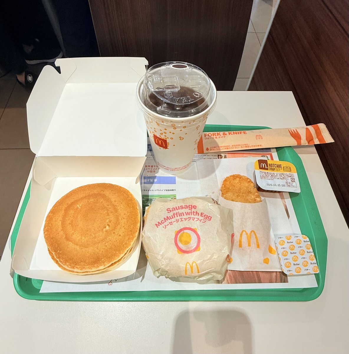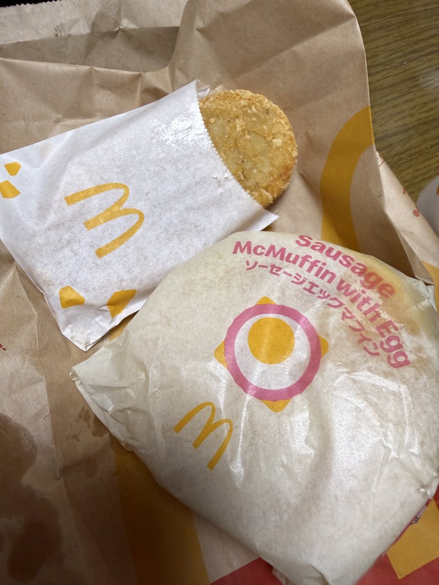 朝飯は #マクドナルド で #朝マック (テイクアウト) #エッグマフィン #ソーセージマフィン #ソーセージエッグマフィン #タブチソーセージマフィン で👇 pic.x.com/FeOAXgYwoN