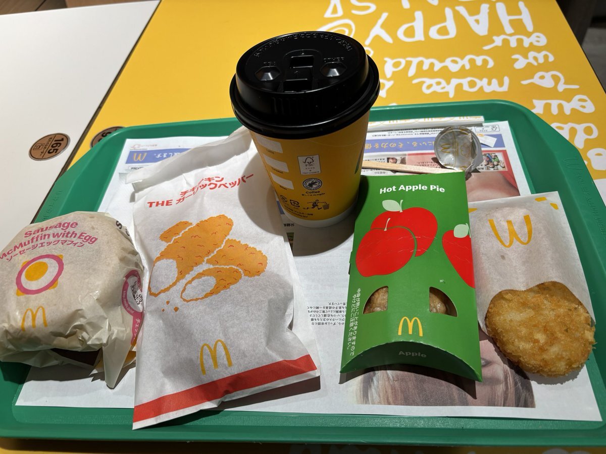 朝マックご馳走様でした😋🙏 #マクドナルド🍔🍟🍦〽️ #ソーセージエッグマフィン #ハッシュポテト #プレミアムローストコーヒー #チキチキンTHEガーリックペッパー #ホットアップルパイ pic.x.com/CElOsdNAEQ