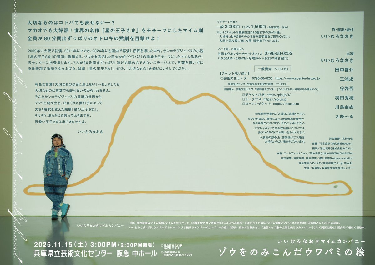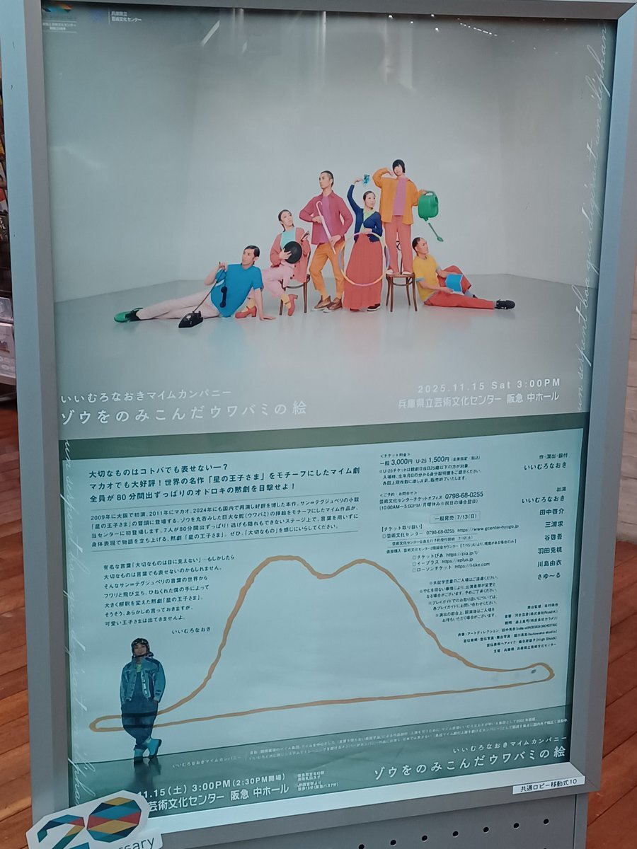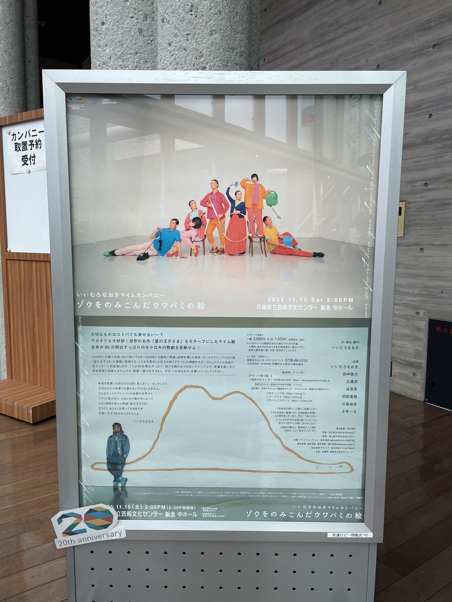 そうなんです。明日のいいむろ出演ギアにもぜひお運びいただきたいですし、今週末11/15(土)15:00-兵庫県立芸術文化センター阪急中ホールで上演の #いいむろなおきマイムカンパニー「 #ゾウをのみこんだウワバミの絵」にもお越しいただきたいのです。 🌏「#星の王子さま 」をモチーフにした x.com/mime1166/statu…