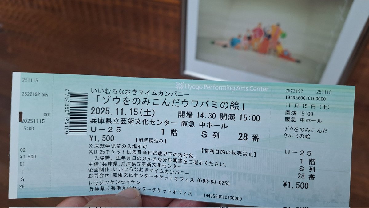 さあ、お天気の土曜日。 公演日和、観劇日和♪ 本日11/15(土)15:00より #兵庫県立芸術文化センター 阪急 中ホールにて。 #いいむろなおきマイムカンパニー 「#ゾウをのみこんだウワバミの絵 」 1回きりの上演です。 嬉しいことに800席ある会場、残りのお席もあと少し。 でも当日券出るそうです。 pic.x.com/2fChoQ2hps