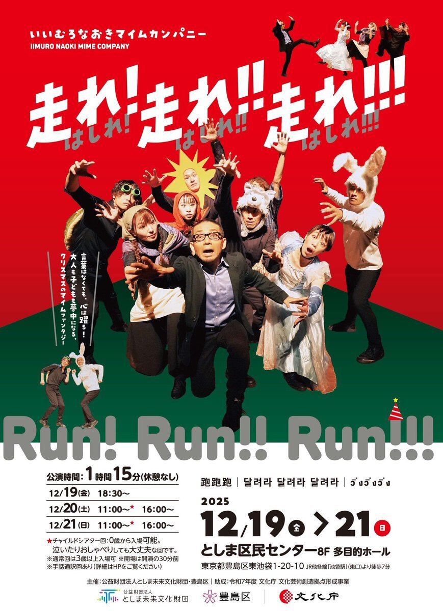 兵庫県立芸術文化センターでの「#ゾウをのみこんだウワバミの絵」を終え、#いいむろなおきマイムカンパニー 次回公演は! お久しぶりの東京公演!です! いいむろなおきマイムカンパニー 「走れ!走れ!!走れ!!!」(略して #走れx3 ) おとぎ話の主人公たちが 走って走って走ります!💨 pic.x.com/Pf8m2HDM5P