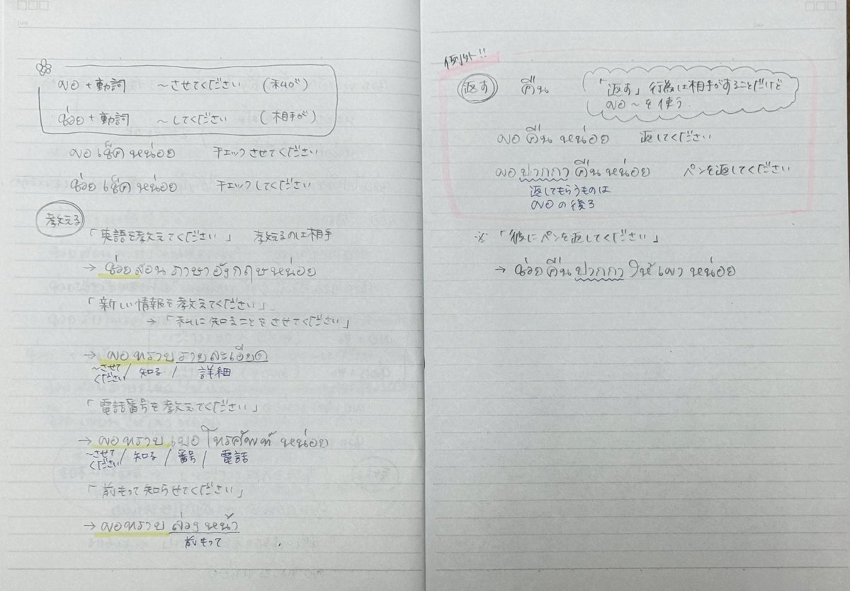 今日も元気にお勉強✍️ ขอ〜 ช่วย〜 ふんわり理解してたつもりだったけど例外でてきて混乱… ขอปากกาคืนหน่อย (私に)ペンを返してください ช่วยคืนปากกาให้เขาหน่อย 彼にペンを返してください ふふふふ… 覚えられるのかな…… #タイ文字部 #タイ語勉強中 pic.x.com/36HHhyJHj1