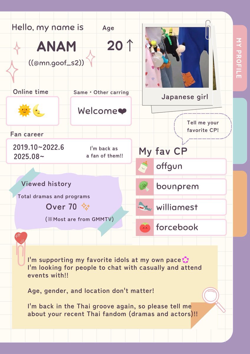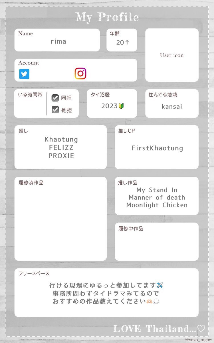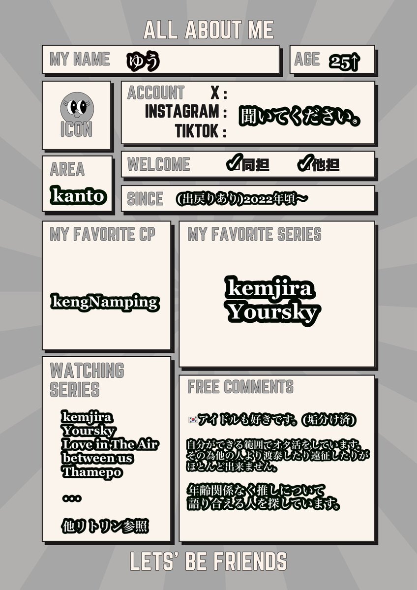 🏷️⟡.· ♡or↺で気になった方お迎えさせていただきます♩♥ #タイ沼プロフィール #タイ沼自己紹介シート #タイ沼さんと繋がりたい #タイBL好きな人と繋がりたい