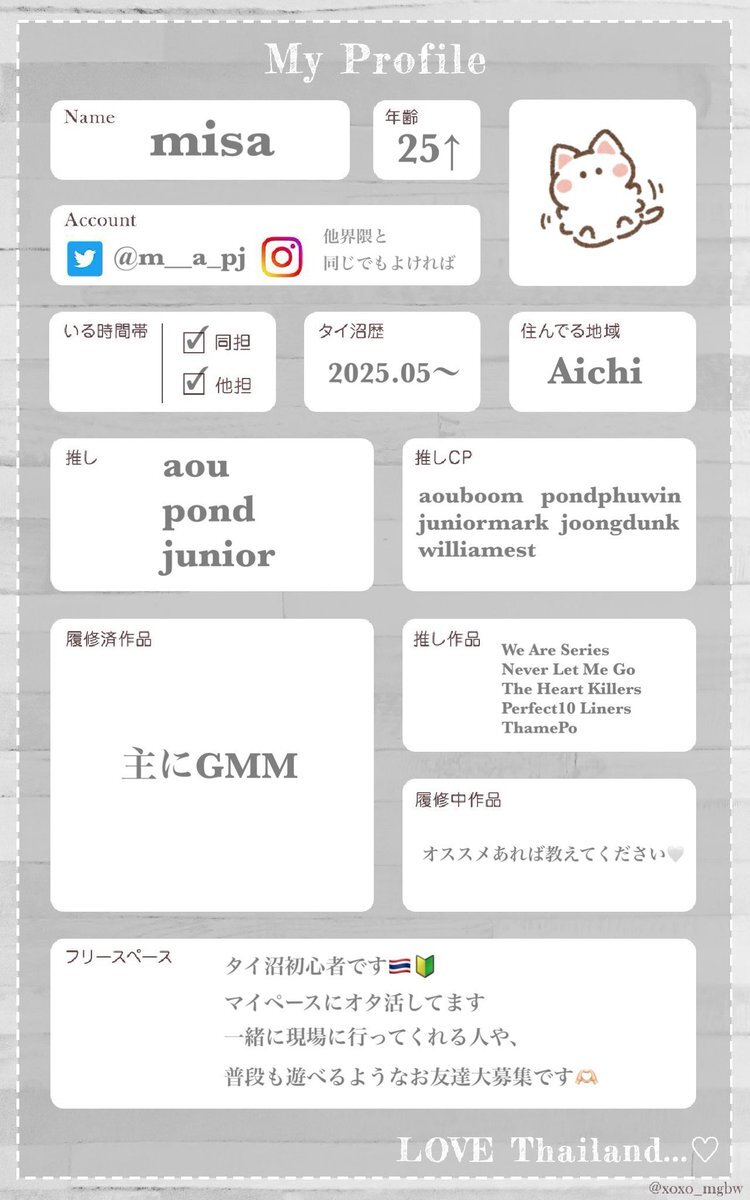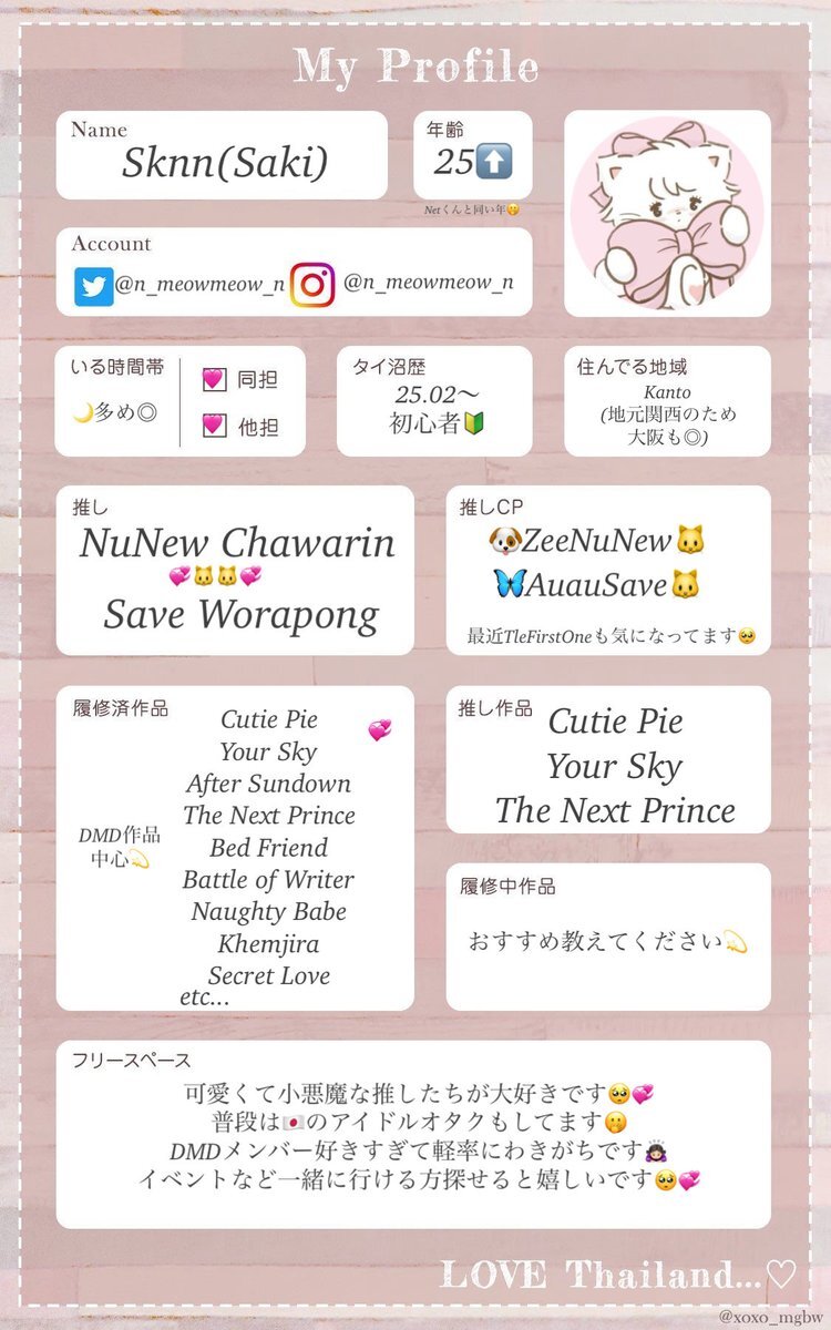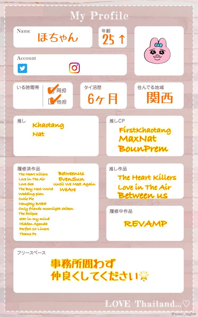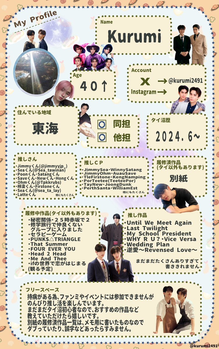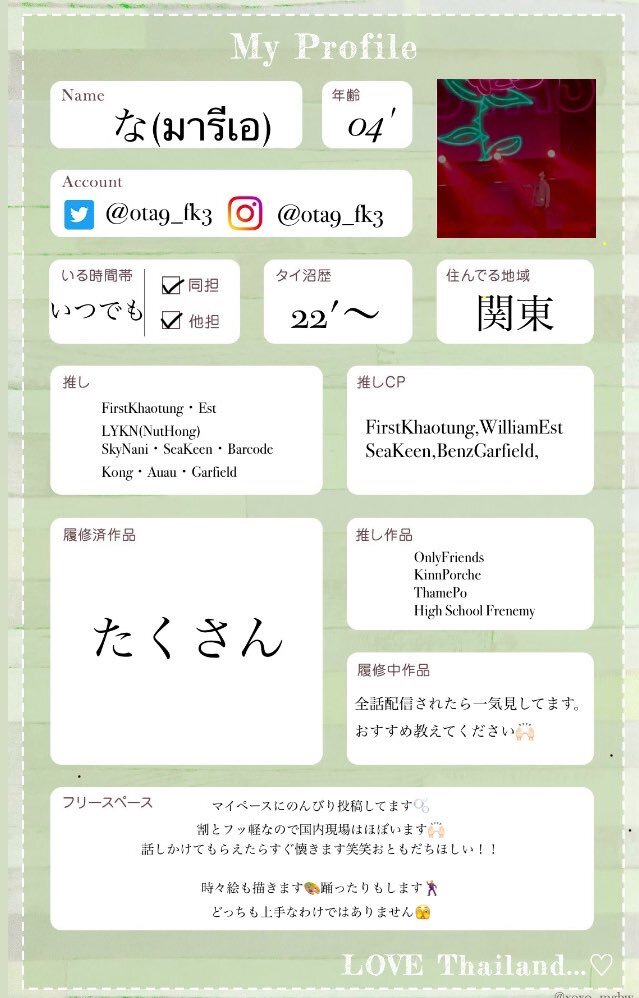 🏷️⟡.· ♡or↺で気になった方お迎えさせていただきます♩♥ #タイ沼プロフィール #タイ沼自己紹介シート #タイ沼さんと繋がりたい #タイBL好きな人と繋がりたい