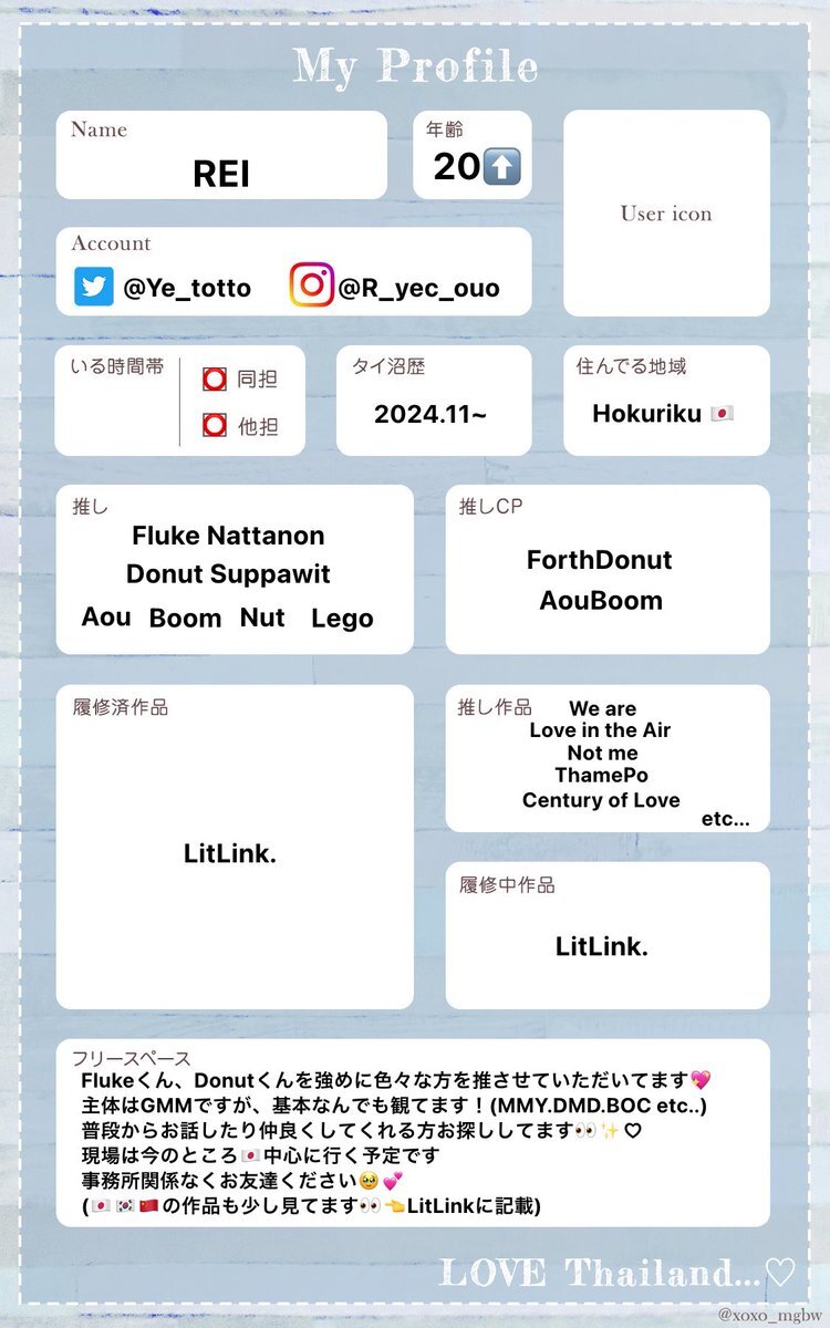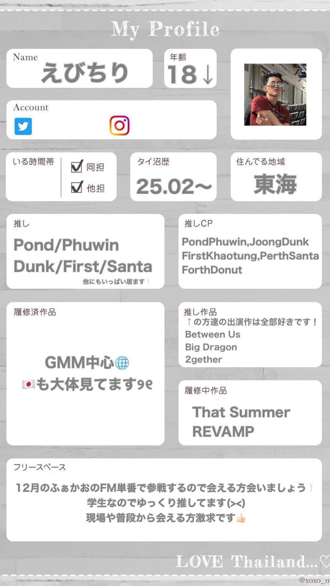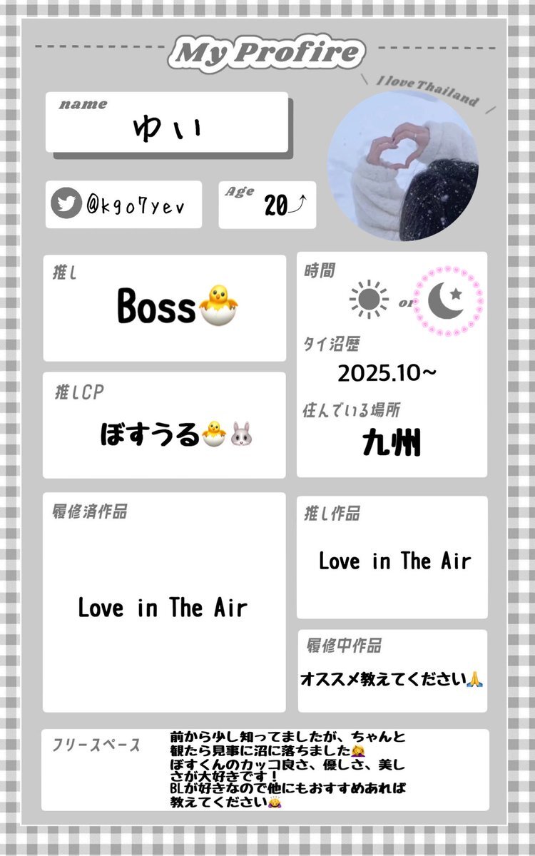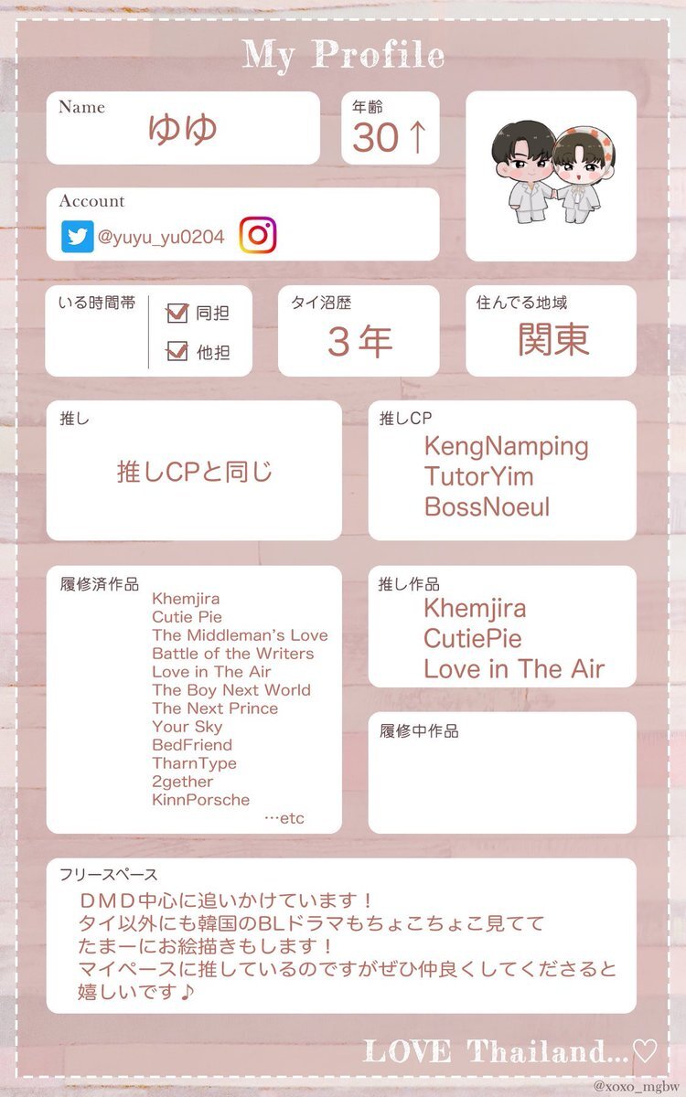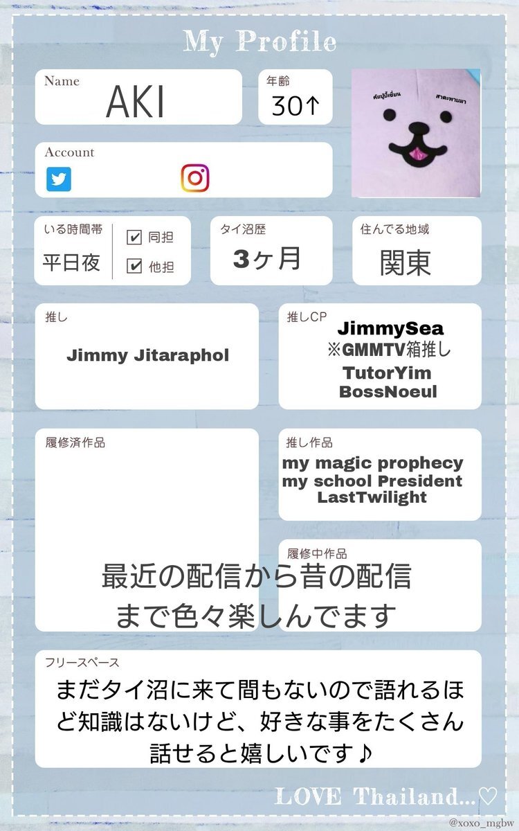 🏷️⟡.· ♡or↺で気になった方お迎えさせていただきます♩♥ #タイ沼プロフィール #タイ沼自己紹介シート #タイ沼さんと繋がりたい #タイBL好きな人と繋がりたい