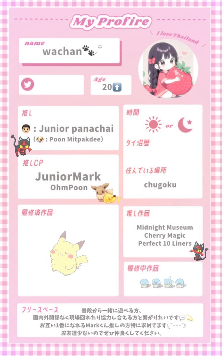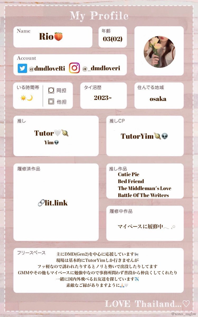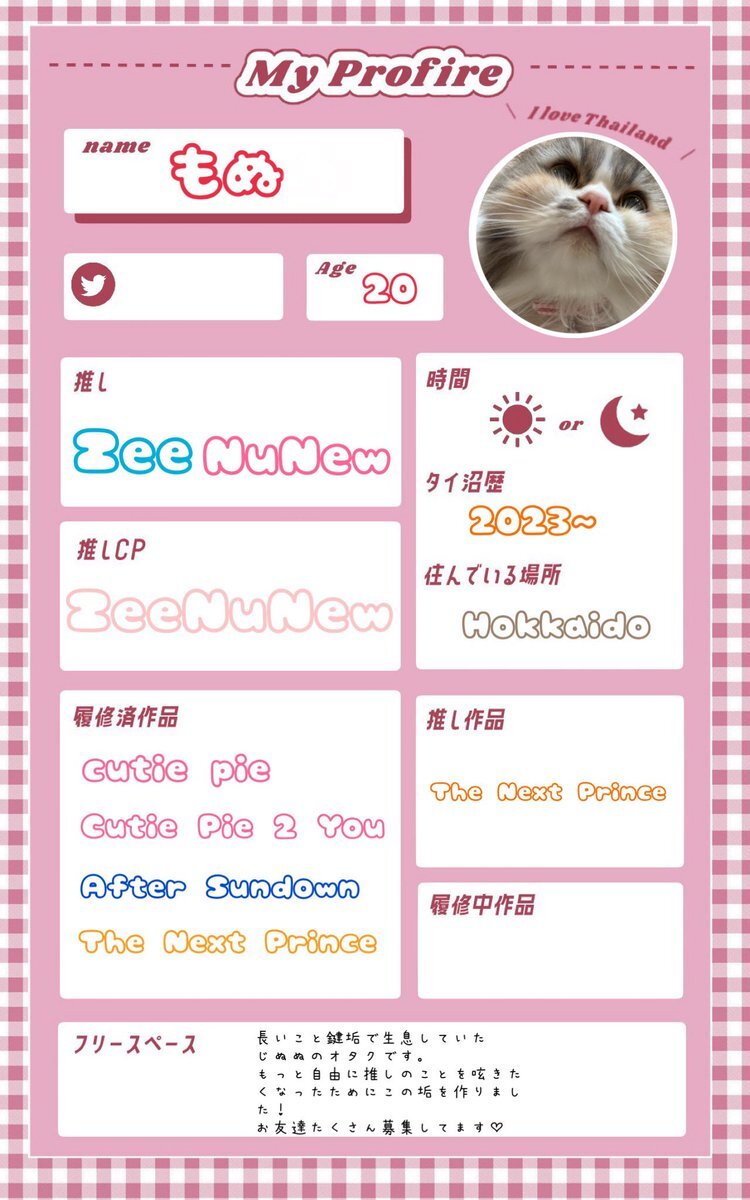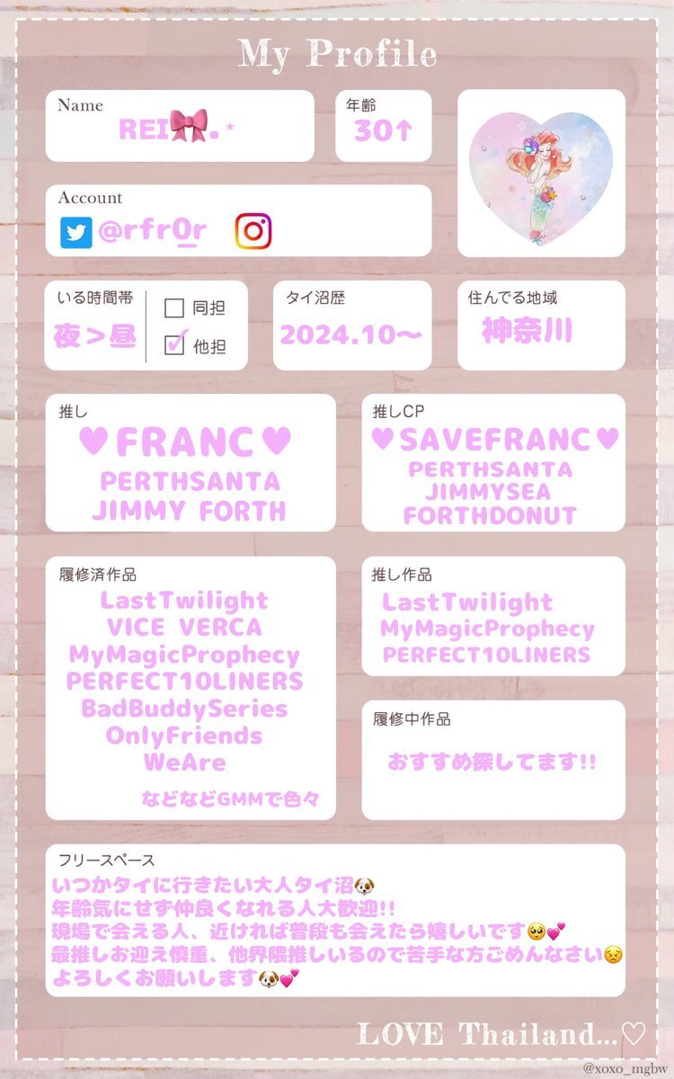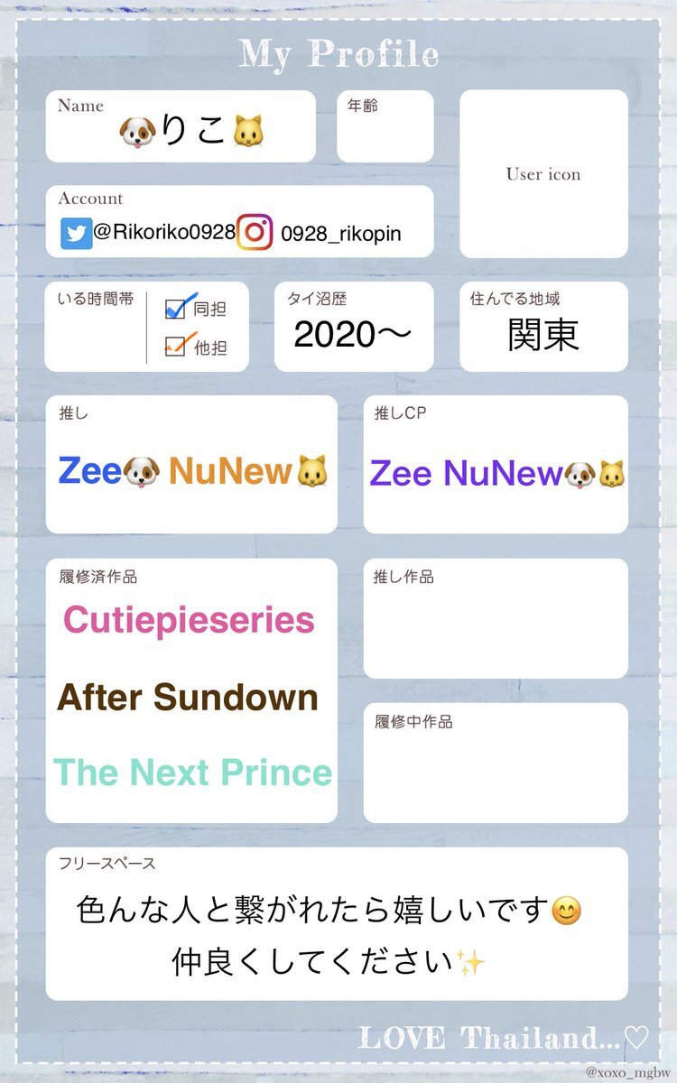 🏷️⟡.· ♡or↺で気になった方お迎えさせていただきます♩♥ #タイ沼プロフィール #タイ沼自己紹介シート #タイ沼さんと繋がりたい #タイBL好きな人と繋がりたい