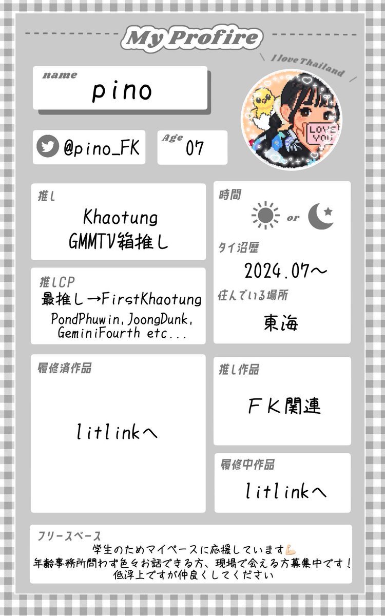 Tag🏷  0からのため、たくさん反応ください🙌🏻⸝⸝      ꒰ lit.link/pino_FK ꒱ ♡or↺で無言フォローにてお迎え失礼します🚗𓈒𓂂 #タイ沼さんと繋がりたい #タイドラマ好きな人と繋がりたい #タイBL好きな人と繋がりたい #タイ沼プロフィール #タイ沼自己紹介シート