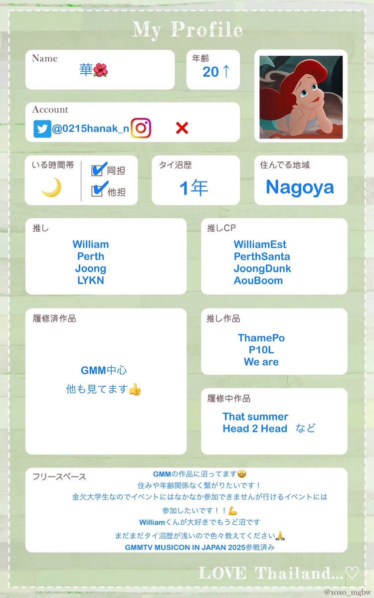 @xx 事務所関係なくお友達が欲しいです𓈒 𓂂𓏸 いいねorリツでお迎え行きます🍀 #タイ沼さんと繋がりたい #タイ沼自己紹介シート