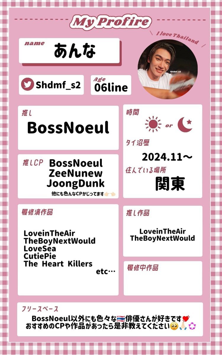 明日24日Bossくんファンコン参加します💭✨ ライブを機に仲良くなれたら嬉しいです🥹🙏🏻 もちろんBossNoeul以外のタイ沼の方も大歓迎です💞 🔁 or ♡で気になった方お迎えさせていただきます🤍 #タイ沼プロフィール #タイ沼自己紹介シート #タイ沼さんと繋がりたい #タイBL好きな人と繋がりたい pic.x.com/GuJSsowGXw