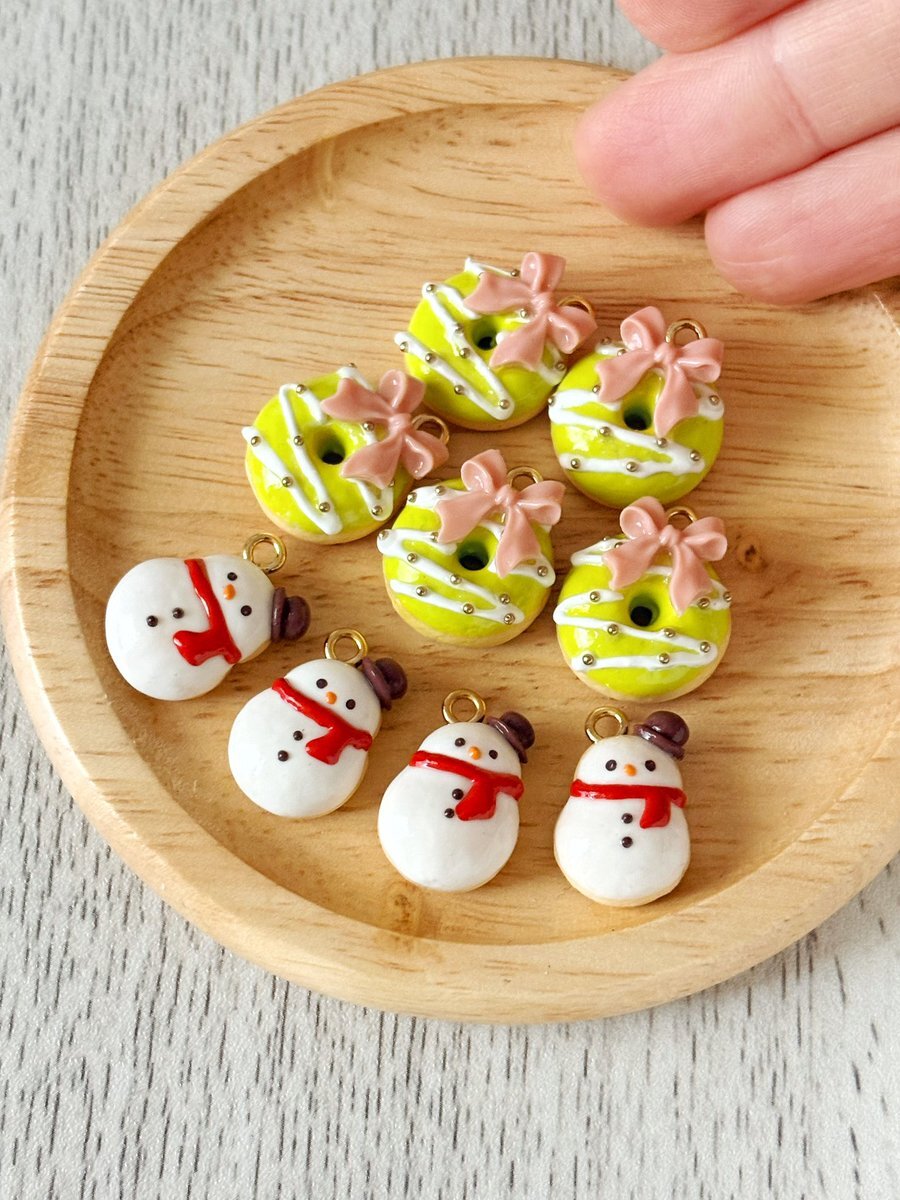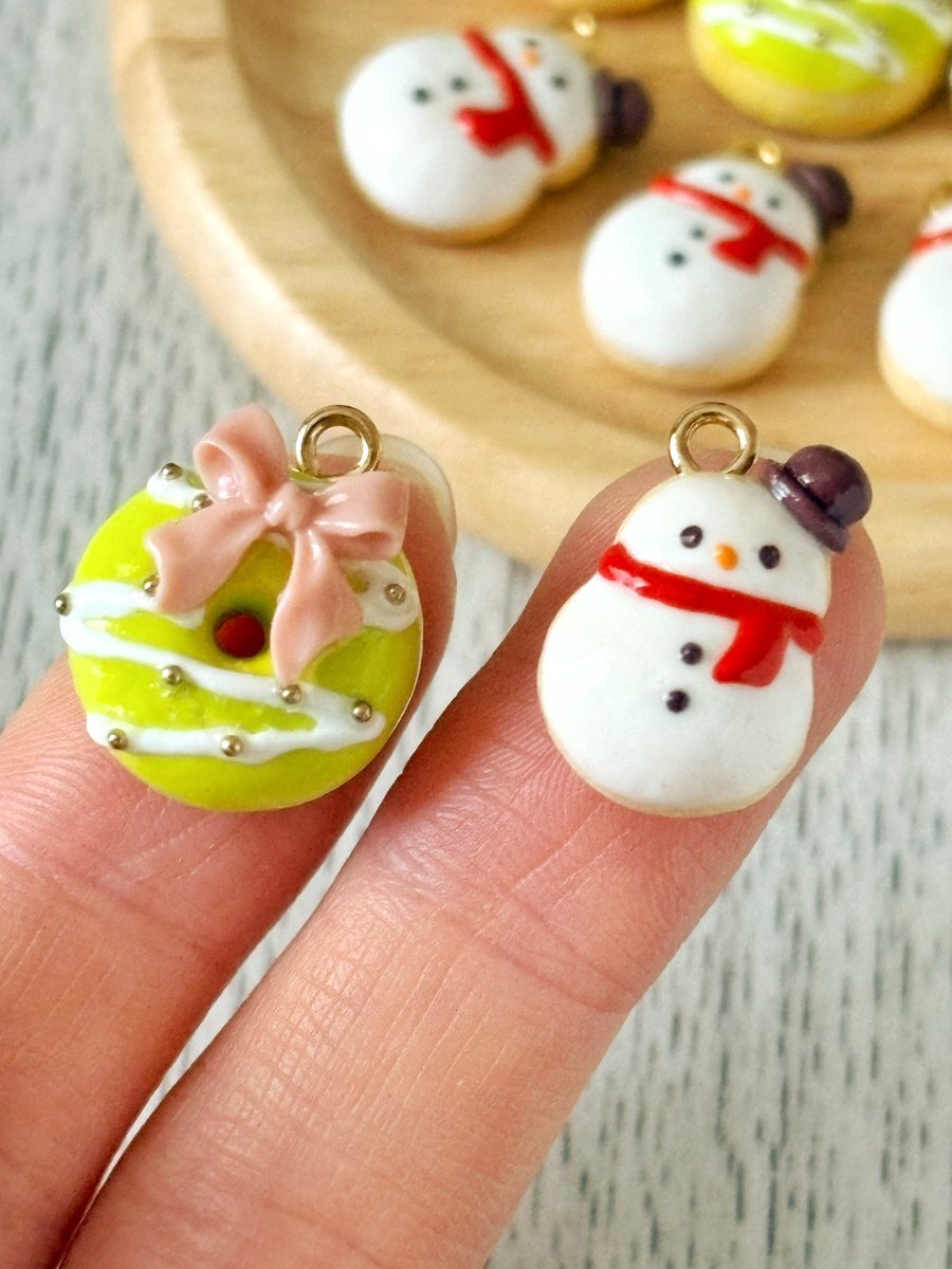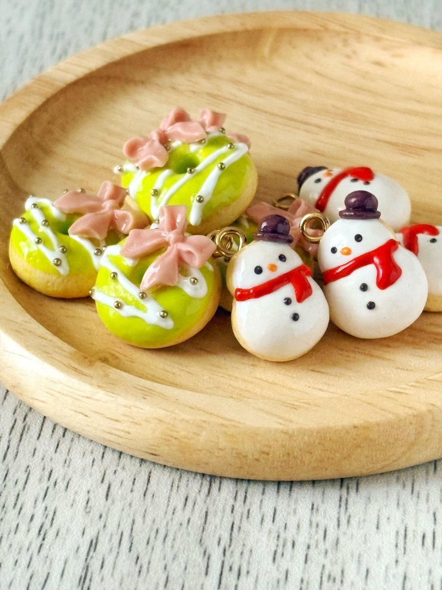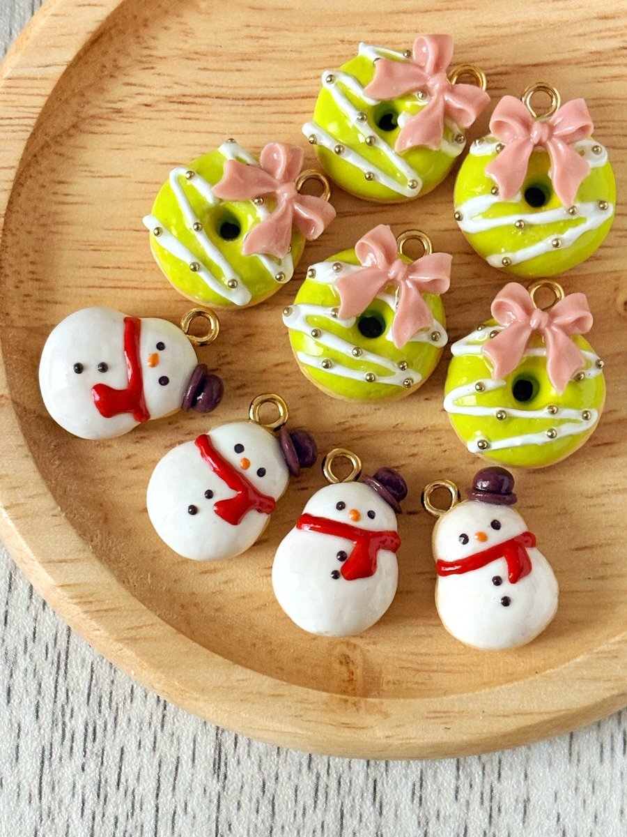 #タグで出会う運命の一品 クリスマスリースドーナツと雪だるまドーナツ✨ クリスマス用イヤリング/ピアスにしたいと思います🎄⛄️ pic.x.com/sSwXCl3Twp
