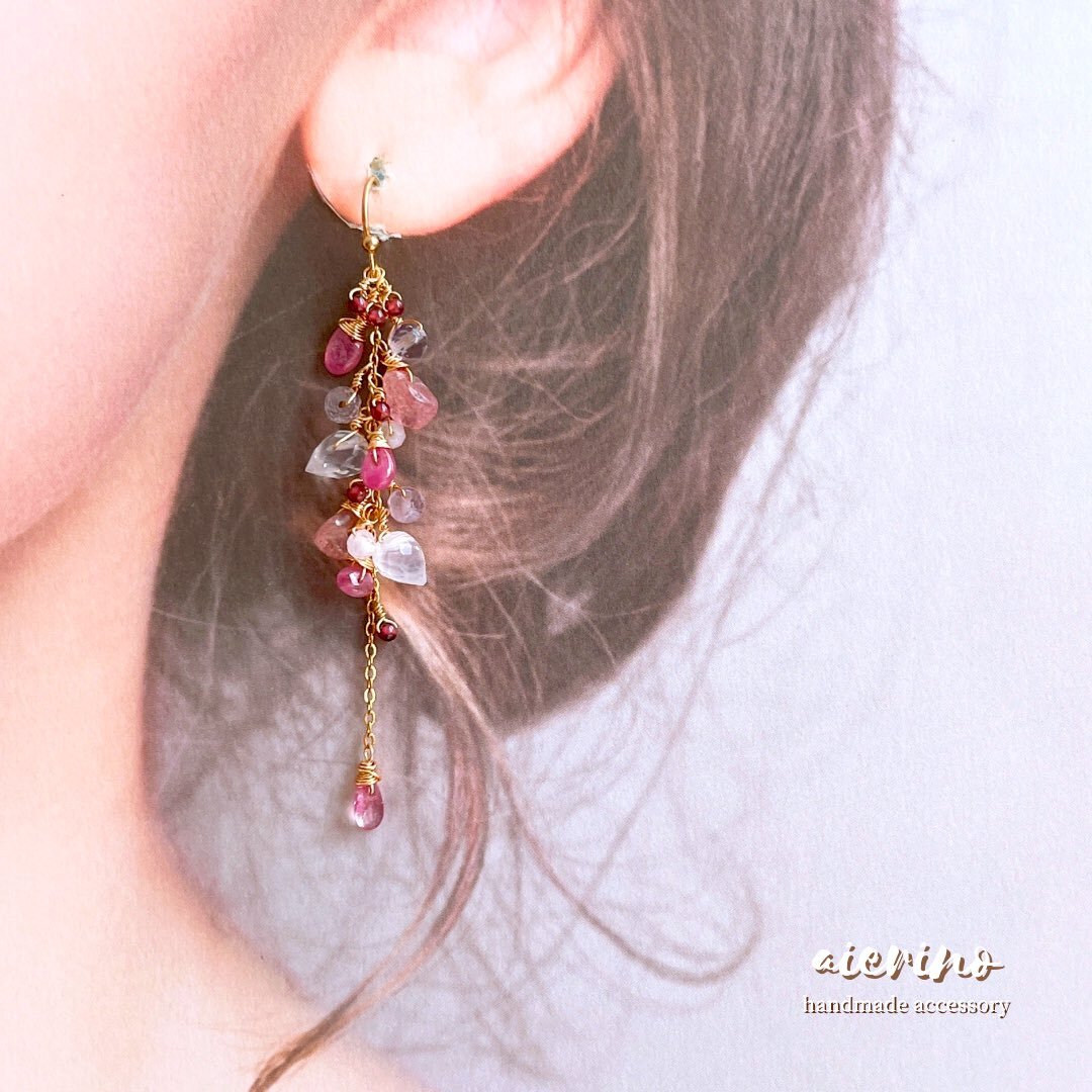 #タグで出会う運命の一品 『ピンクサファイアの      ロングピアス/イヤリング𓍯』 ⁡ 耳元を華やかに飾ります🍑・:* ⁡ 𓊯minne.com/items/41075601 pic.x.com/cm48zV61rG
