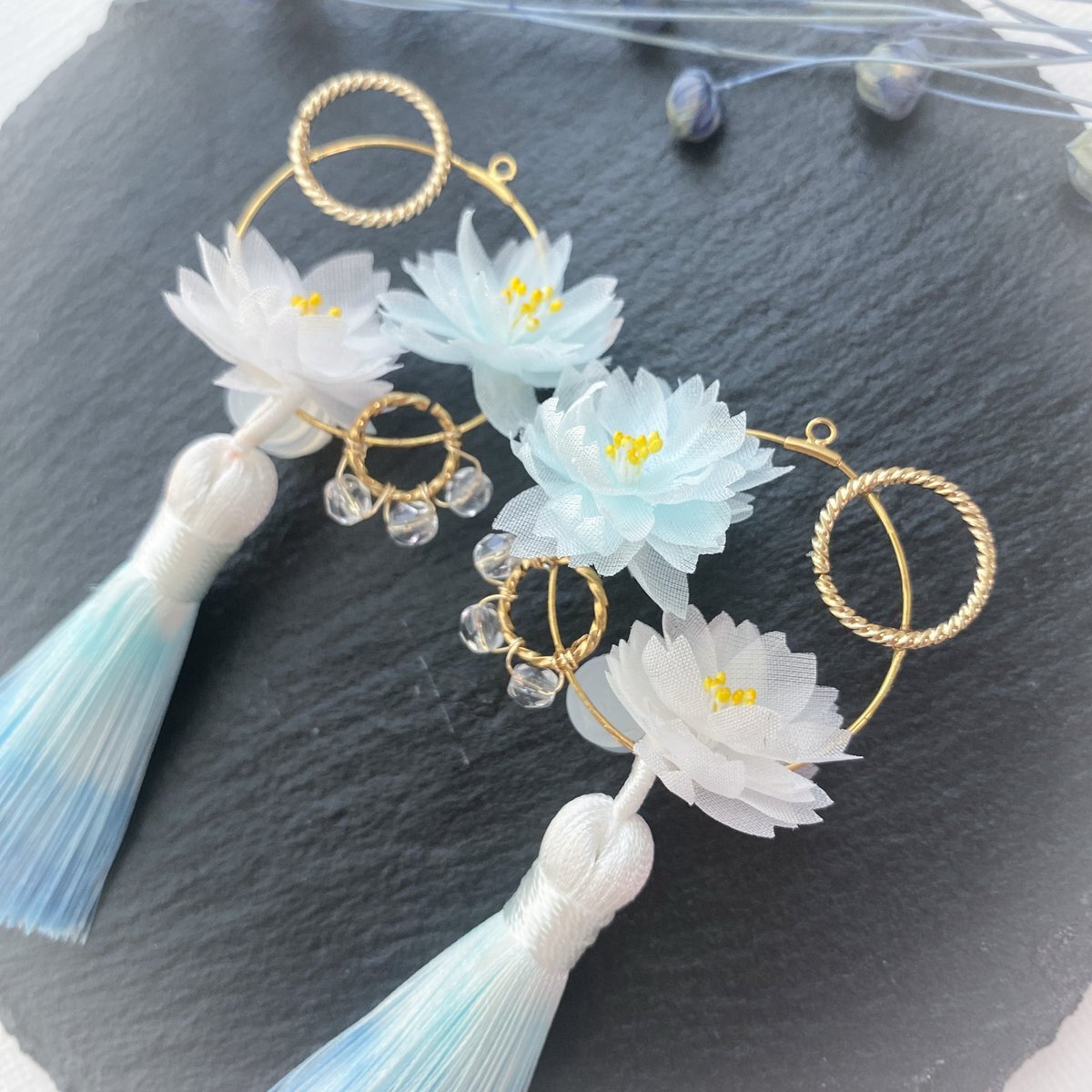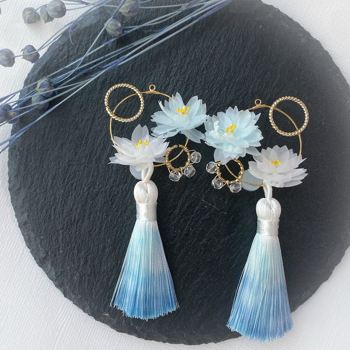 #タグで出会う運命の一品   布花とグラデーションタッセルの睡蓮💠 薄絹のお花なので透け感があります pic.x.com/sm6X92nDsZ