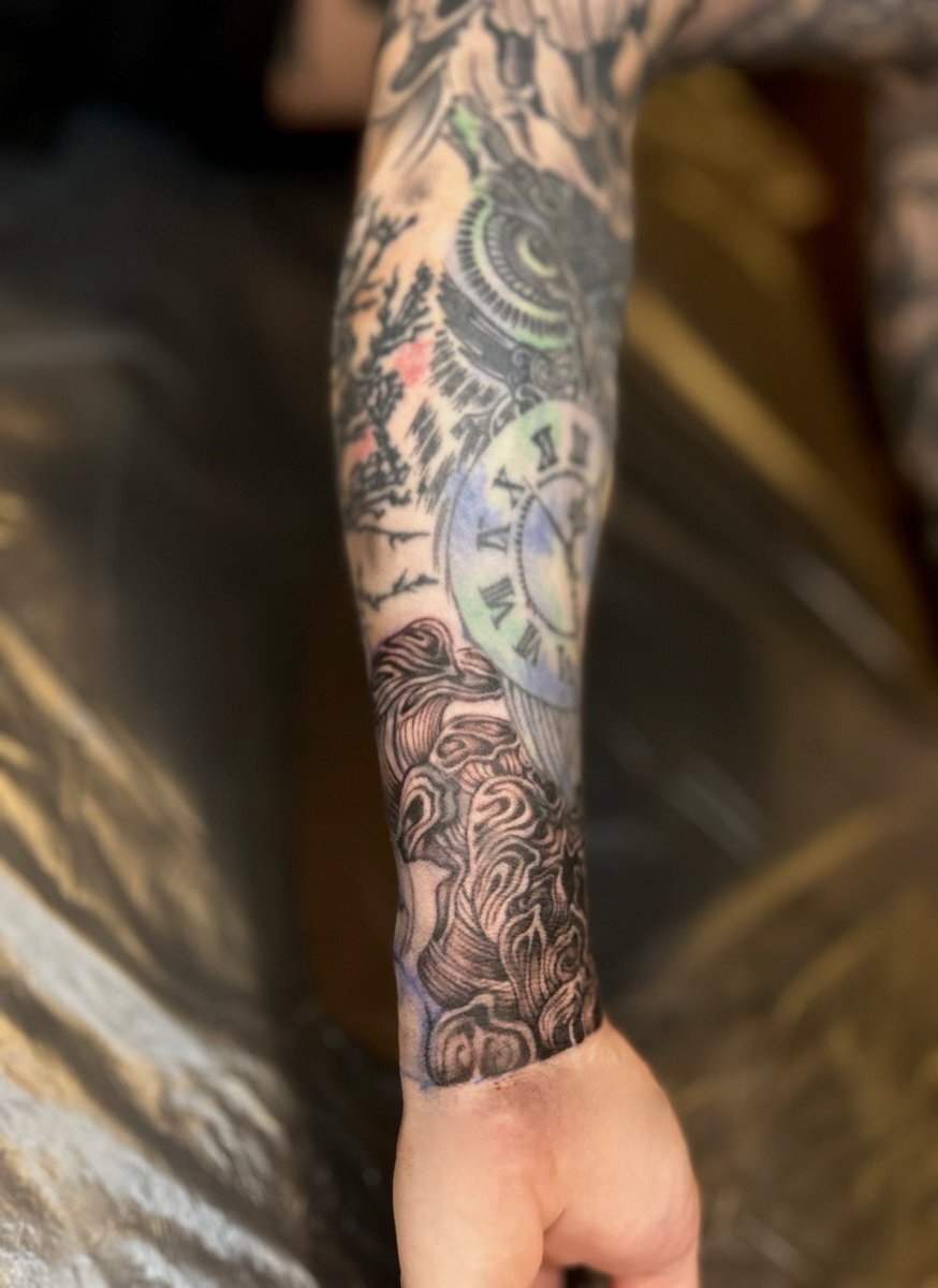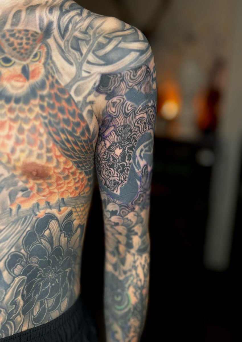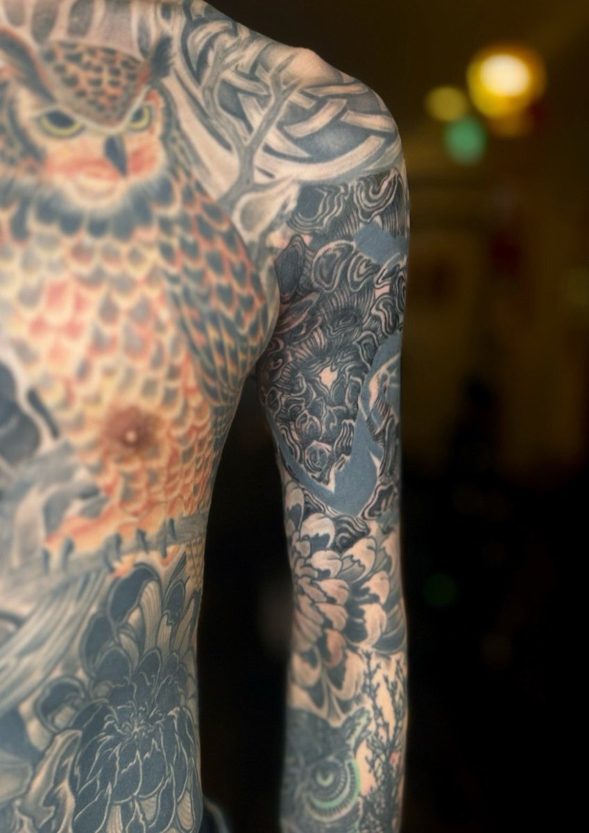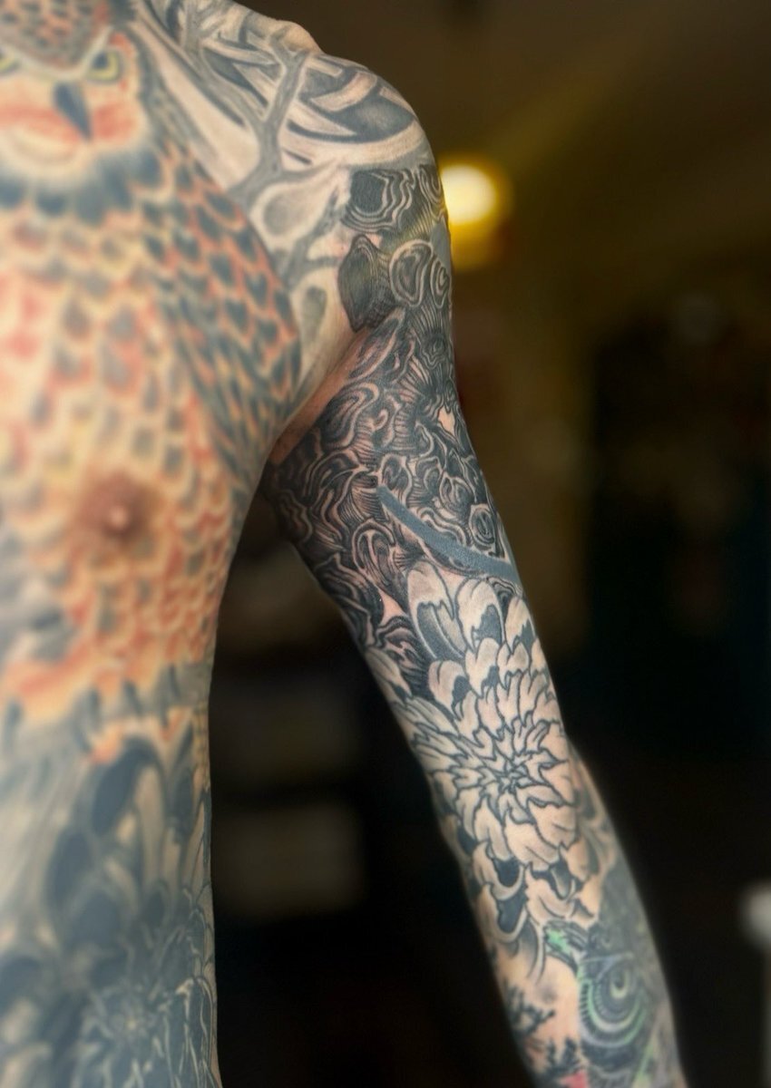 左腕,黒菊3時間進めていただきました! 脇の下はとても痛かったです @arrudemo_them @ARRUDEMO_TATTOO #タトゥー #入れ墨 #タトゥー好きな人と繋がりたい pic.x.com/J6EXN6hHJf