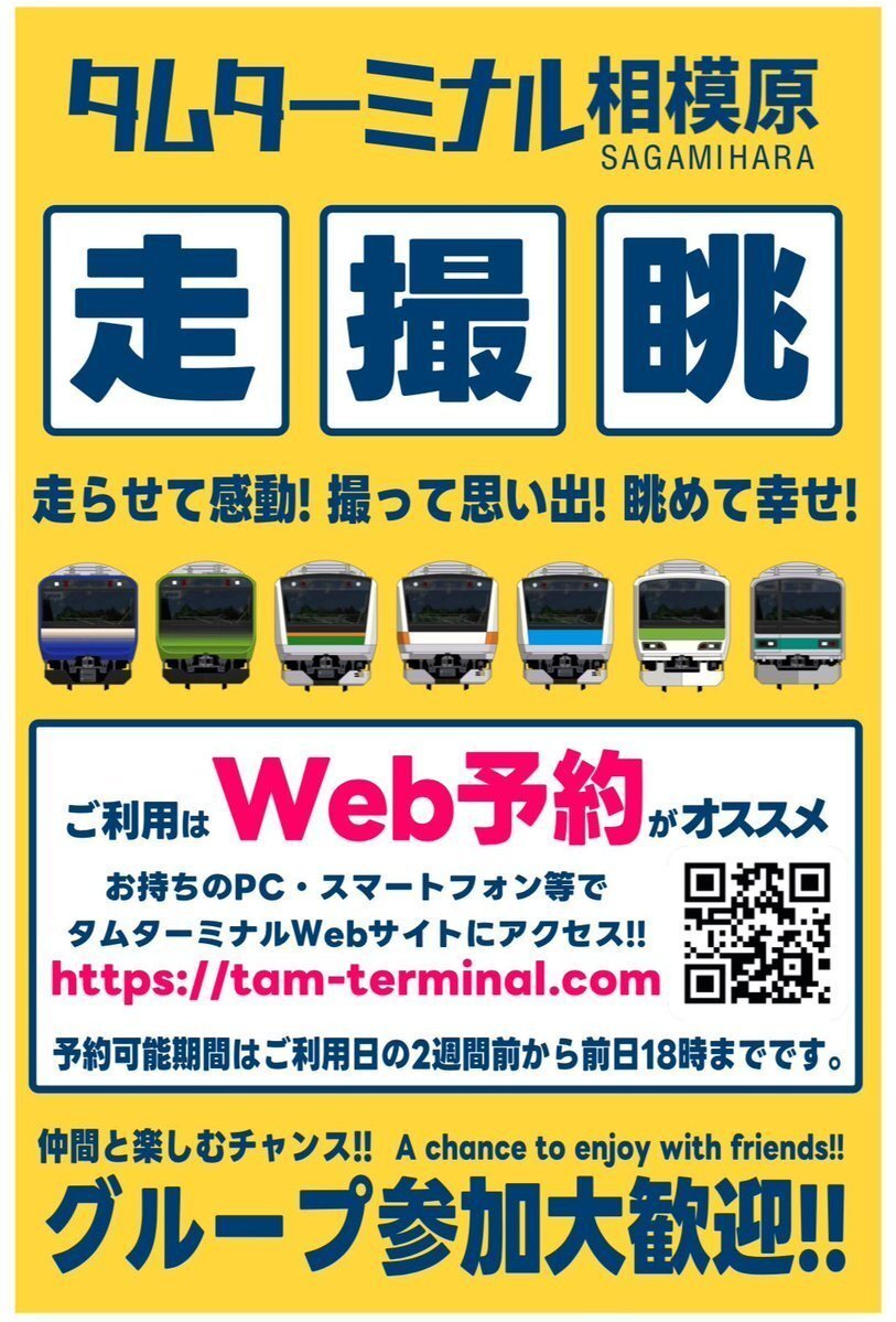 【鉄道】🎉 #タムターミナル相模原 🎉 ✨ 走・撮・眺 ✨ 🚃 走らせて感動! 📸 撮って思い出! 👀 眺めて幸せ! 💻 ご利用は Web予約がオススメ! 👉 PC・スマホからアクセス! 🔗 tam-terminal.com 📅 予約可能期間 ➡ ご利用日の 2週間前~前日18時まで 🌟 グループ参加 大歓迎!! pic.x.com/H7FG8p2B7X