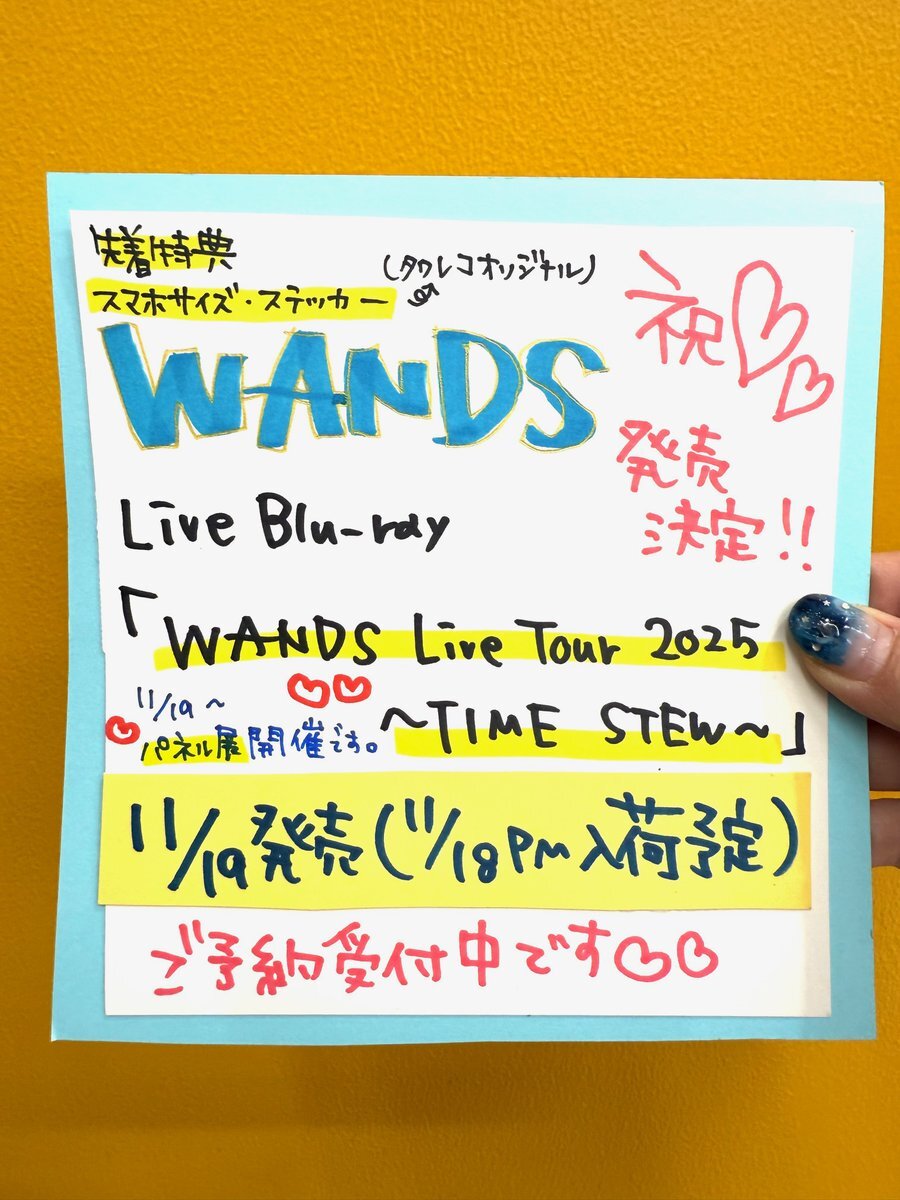 #WANDS】 Live Blu-ray💿 🔵WANDS Live Tour 2025 ~TIME STEW~🔵 入荷日迫ってきてドキドキです!!📺💕💕💕 先着特典の『スマホサイズ・ステッカー(タワレコオリジナル)』すてき過ぎませんか!!😍💖💖💖 11月18日PM、入荷予定!!👀 tower.jp/article/featur… #タワレコ町田店はWANDSを全力応援 pic.x.com/OSaYbOu2TM