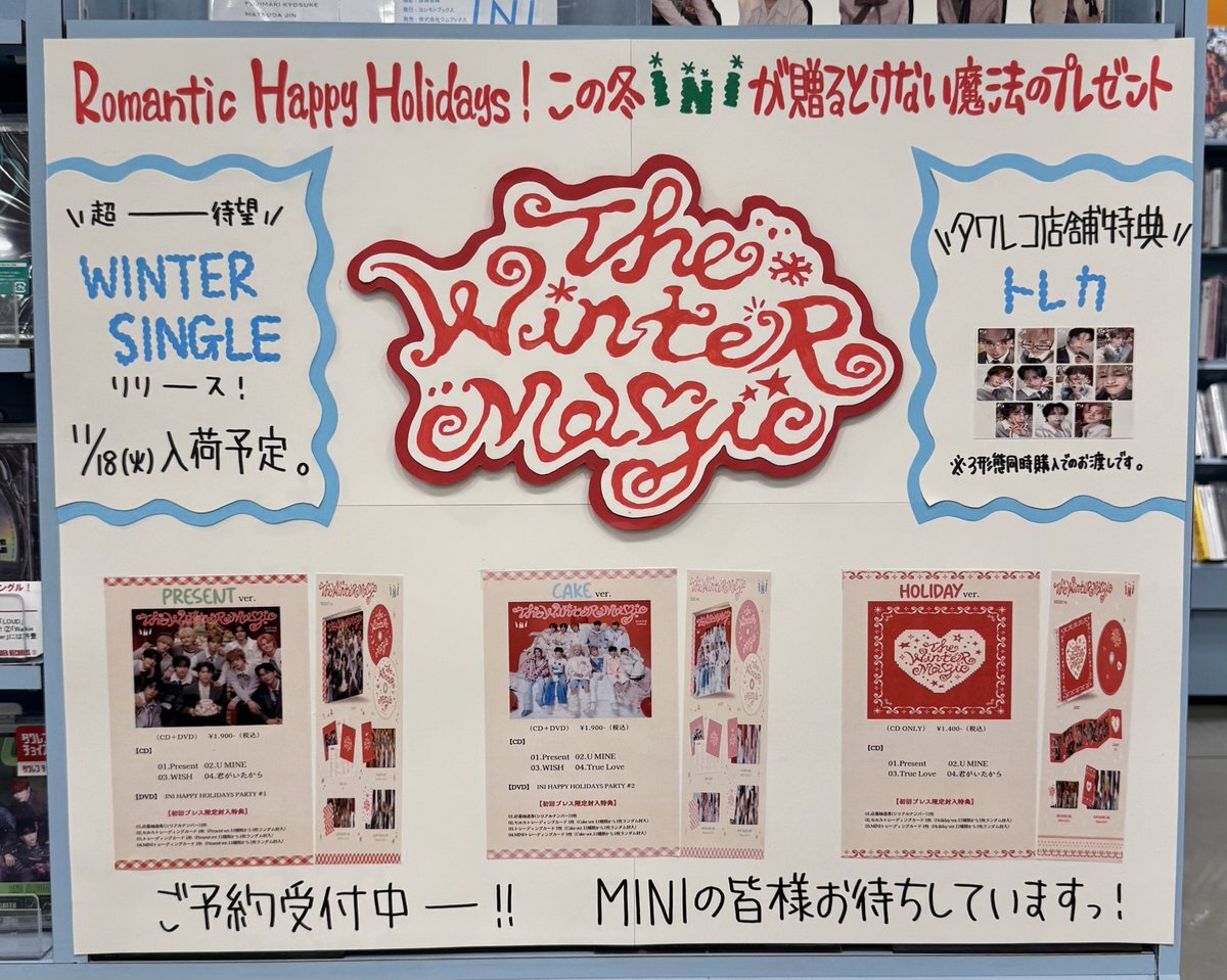 【#INI】 初のWINTER SINGLE🎄🤍 『THE WINTER MAGIC』 本日発売ーーっ💨 タワスズ、過去最大規模の入荷数ですっっ❕ #MINI の皆さまご来店お待ちしてますっ!! #ウィンマジ #INI_THE_WINTER_MAGIC #INI_Present #タワレコ鈴鹿店は髙塚大夢くん推し 🩵 #MINIのINI_THE_WINTER_MAGIC在庫連絡 pic.x.com/H2ibkWyd3f