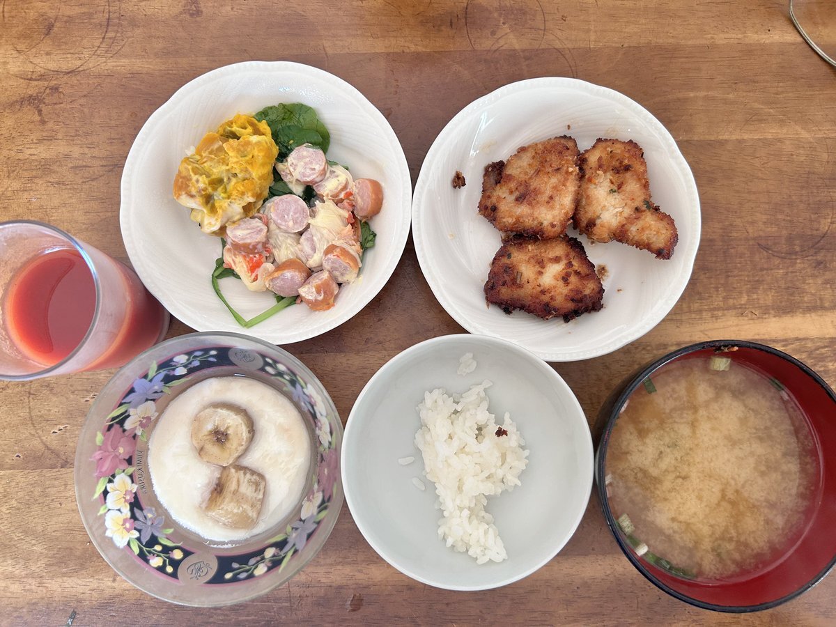 ご飯 味噌汁 バナナ入りヨーグルト ポテサラ 鶏肉 トマト野菜ジュース #ダイエット #ダイエット記録 #ダイエット仲間募集中 #ダイエット垢と繋がりたい #ダイエット垢と繋がりたい pic.x.com/wojEFw1Ice