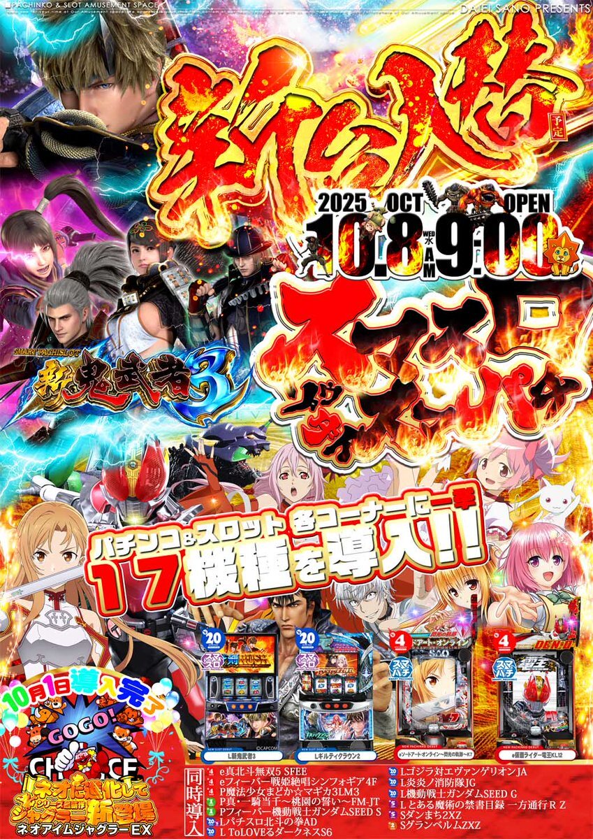 🔥店舗情報🔥 ダイエー佐野店、新装開店しております(^_-)-☆ 🎊新台紹介🎊 🔥Lヴヴヴ2 🔥L絶対衝激 🔥ネオアイムジャグラー🌈増台🌈 🔥Lレヴュースタァライト 🔥Lディスクアップ🌈増台🌈 🔥Lわたしの幸せな結婚 🔥L麻雀物語 🔥Lルパン三世 🔥Sハイパーラッシュ #ダイエー佐野店 #新装開店 pic.x.com/uDTAc2rK9N
