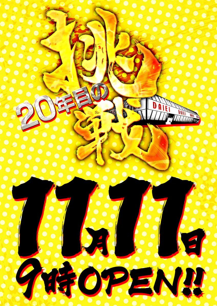 🔥店舗情報🔥 1⃣1⃣月1⃣1⃣日(火)もダイエー佐野店9時OPEN! (*´ω`*)(*´ω`*)(*´ω`*)(*´ω`*)(*´ω`*)(*´ω`*) 是非×2、ダイエー佐野店でお楽しみください!! #ダイエー佐野店 #佐野市 #11月11日 #まだまだ挑戦 pic.x.com/tg96fvGwmf