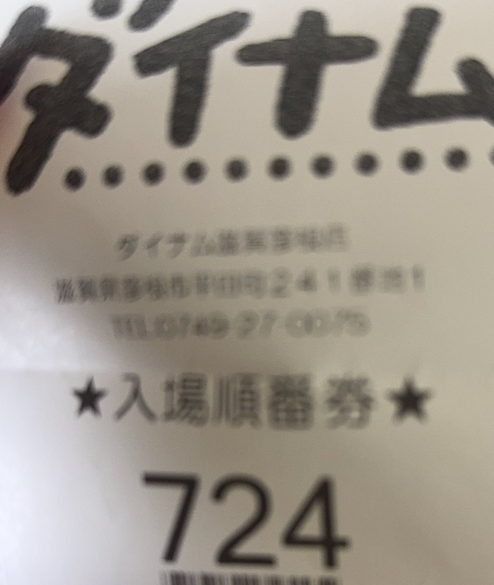 オーバーキル❗️ 720台のお店で引いた番号は 724番😓 間けっこう抜けてそうなので 何かには座れると思うけど 正直期待は… あとはしんさんレビンさんの 爆出しを祈って 頑張ります😊 #アルマダイナム連覇達成祈願 #ダイナム滋賀彦根店 pic.x.com/bH5A9HDJIr