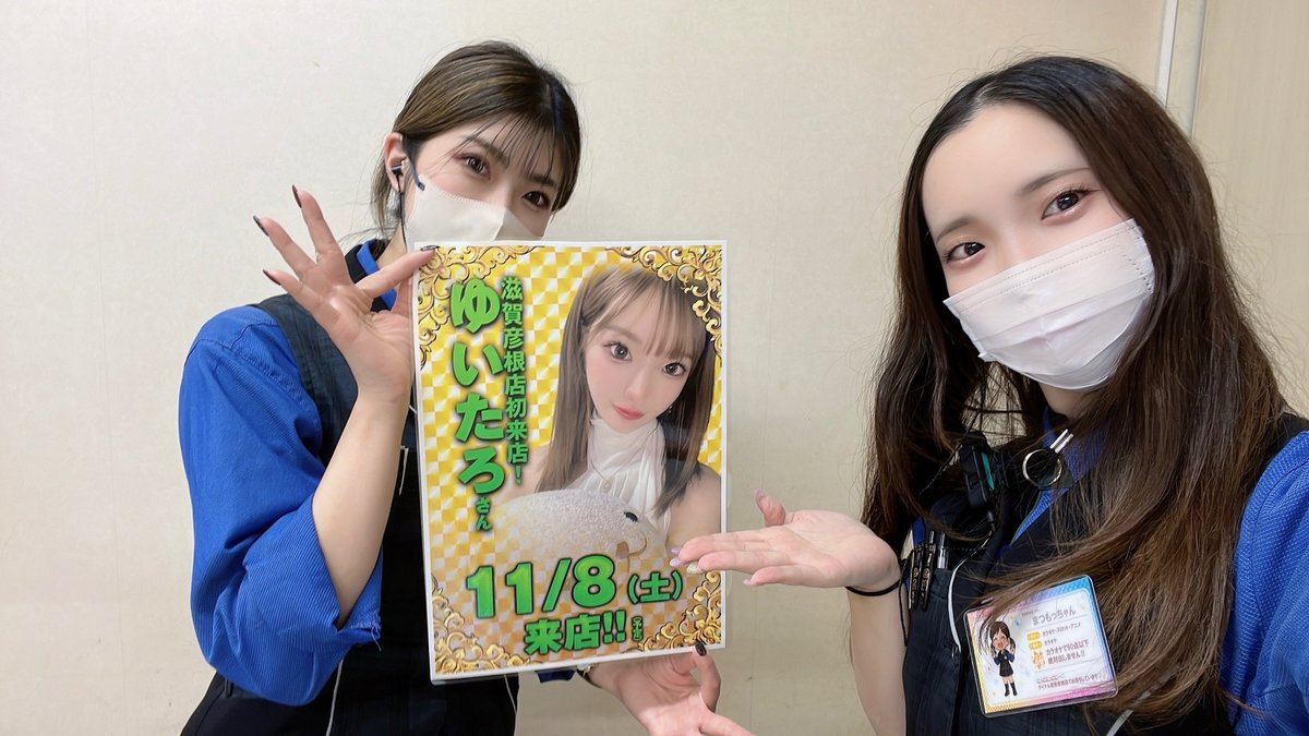明日対応時間決まってますー⏰ ①11:00- ②14:00- お写真やサインなどのご希望ありましたらこの時間にお集まりください🙇♀️ #ダイナム滋賀彦根店 #pr x.com/reocopon/statu…