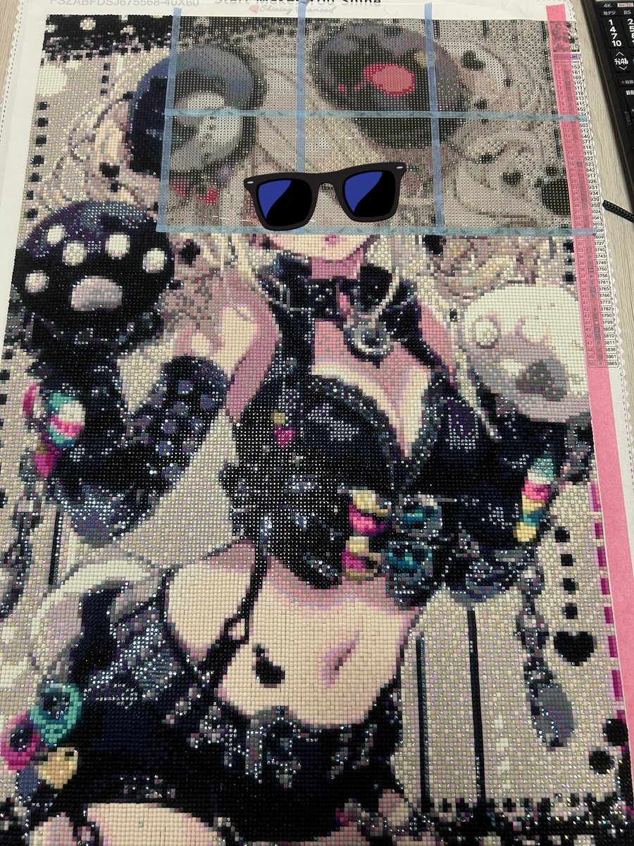 【魔女とスカル】30x40 2日目進捗。4区画 クッキングシート縦に切りながらポチポチした方が楽かも。 1番下1cmは貼り付けたまた残してます #ダイヤモンドアート pic.x.com/iDjWTQHxz5