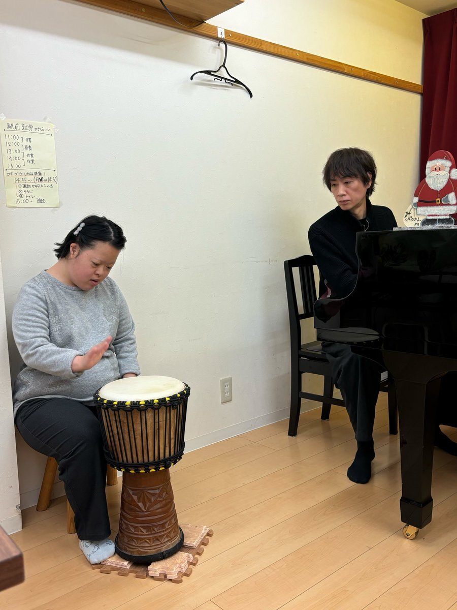 YouTube撮影❗️ 少し早めのクリスマス曲でした😊 今日から数回続きます✨ まゆちゃんよく知ってる曲でリズムよく叩いてました😊 #ダウン症 pic.x.com/p5aUDcRVH6