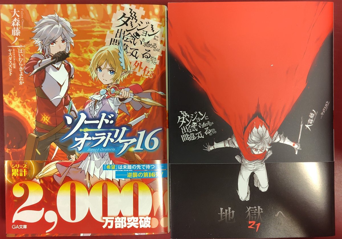 【#ダンジョンに出会いを求めるのは間違っているだろうか】 本日、21巻発売です〜📚️✨ とっても目を引く、赤と黒の表紙が目印です🎶 #大森藤ノ 先生 #ダンまち 【GA文庫】 pic.x.com/Uwfc8E9BTl