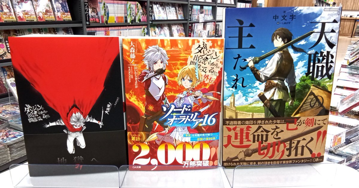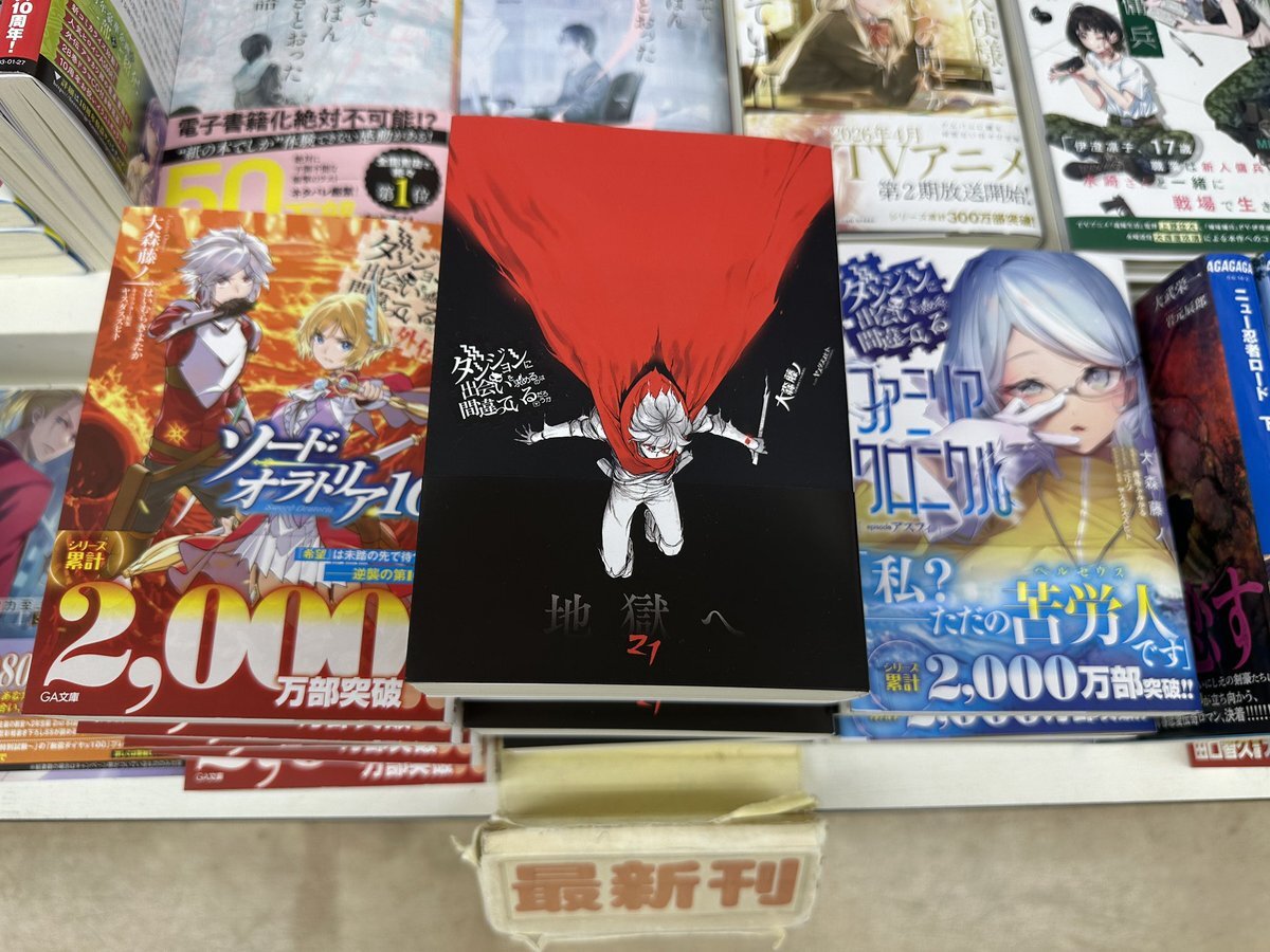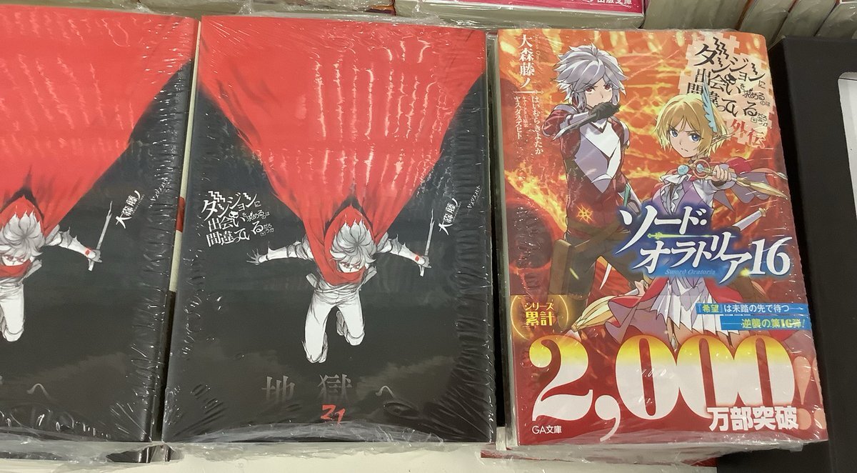 【新刊情報】 こんにちは、文芸書・文庫担当です。 #GAノベル #TOブックス #GA文庫 本日入荷しました! 注目は #大森藤ノ『#ダンジョンに出会いを求めるのは間違っているだろうか』21巻など。 ライト文芸新刊・ライトノベルの棚にて展開しております、ぜひご覧ください。 pic.x.com/qWYDV7tK1U
