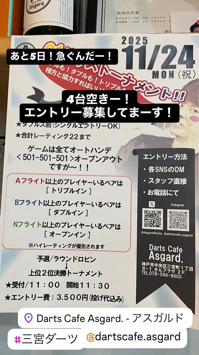 本日のプレーヤーDay‼️ 20:00 開始予定です ご来店お待ちしております🎯✨️ 【 Drama公式プレーヤー🇯🇵 X 】 小島渉 ➡️@neeeeegi_300 #drama #ダーツ投げ放題 #プレーヤーデー pic.x.com/AxapHTSHz0
