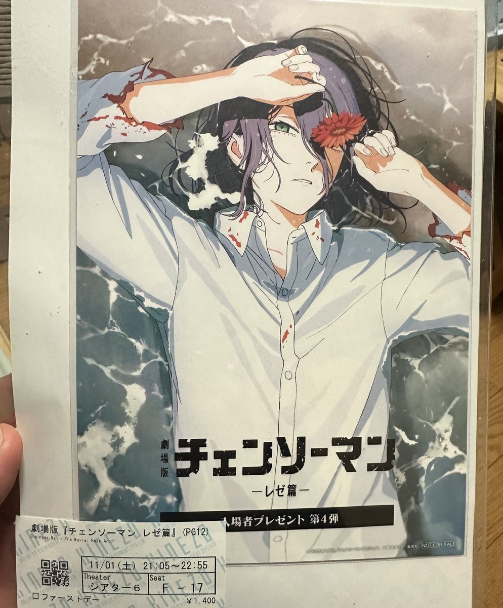 ようやく行きたかった、劇場版チェーンソーマンレゼ編観れました。やはりレゼさんは、美人さんですね☺️第4弾入場者特典は、レゼさんのイラストでした✨✨キネパスマイスタンプはポチタでした🤗 #チェーンソーマンレゼ編 #レゼ 観てない人はぜひ、楽しくてセクシー🫦で面白かったです😆 pic.x.com/ljVl1LdbjQ