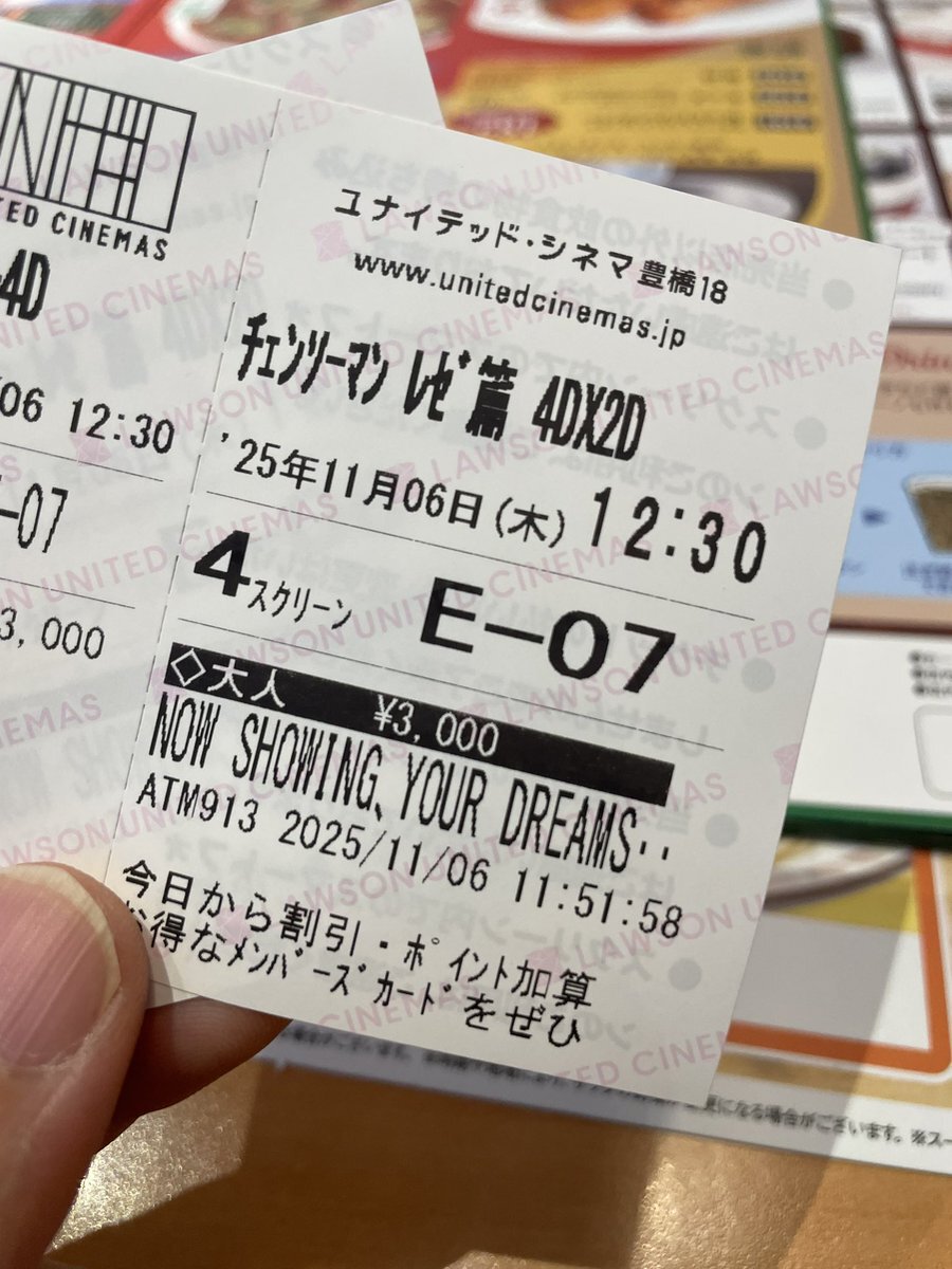 最後に映画を観て解散 息子たちがそれぞれに観たらしく、「観たほうがいい」「話はそれからだ」と言っていたので。 うん、確かによかった。 米津玄師『Iris out』オープニングのハマりかたがヤバかったです。最初から勝ち確演出。 満点のよき休日でした。 #チェーンソーマンレゼ編 pic.x.com/K927TCTEaA