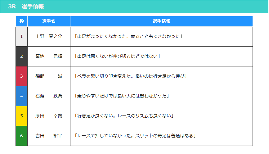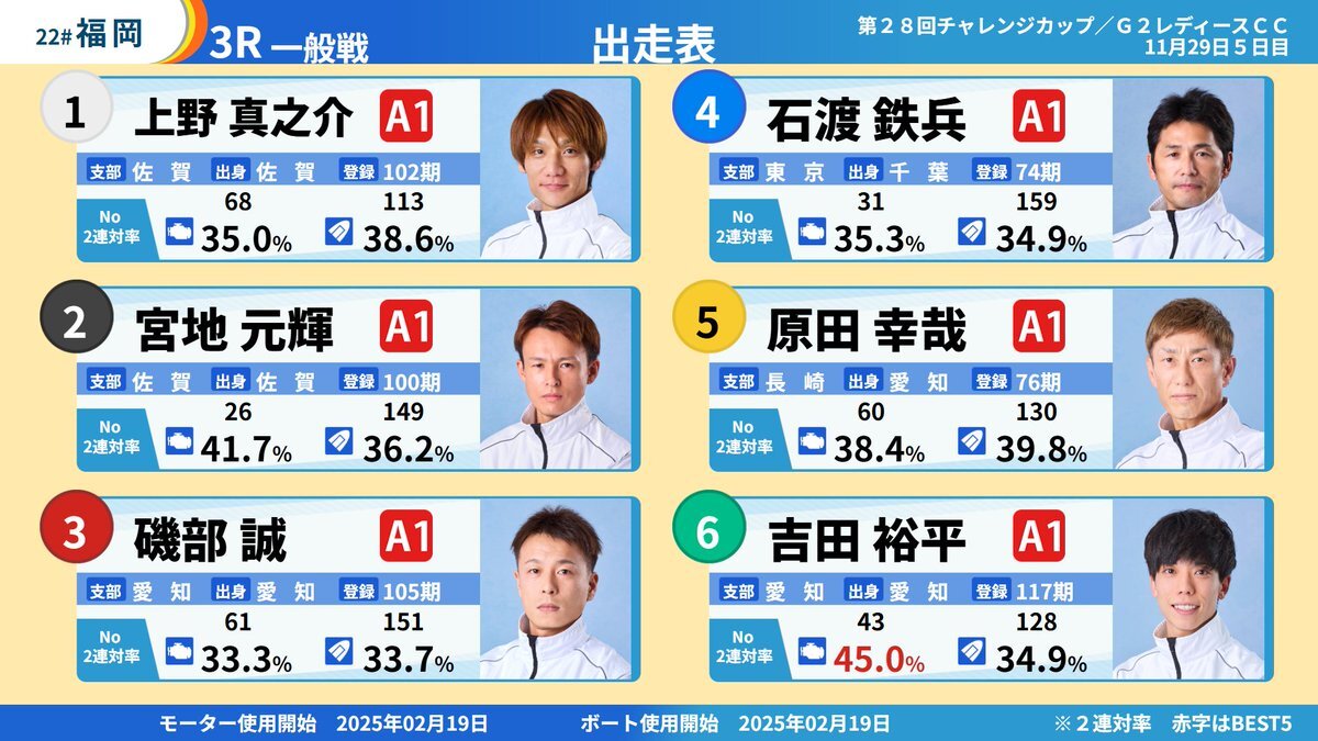 【🏆福岡SG #チャレンジカップ 5日目3R🏆】 舟券予想に役立つ情報をお届け! 福岡3R🔥あなたの予想も教えてね!👀 🚤出走表 🚤オリジナル展示データ 🚤選手コメント 🚤解説者予想 #ボートレース福岡 #チャレンジカップまとめ #持てるスキルフル装備で挑め pic.x.com/UHhHsUIiMe