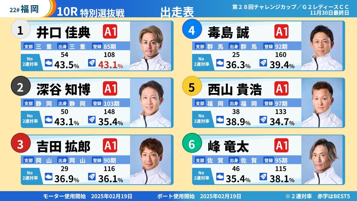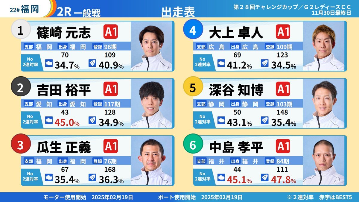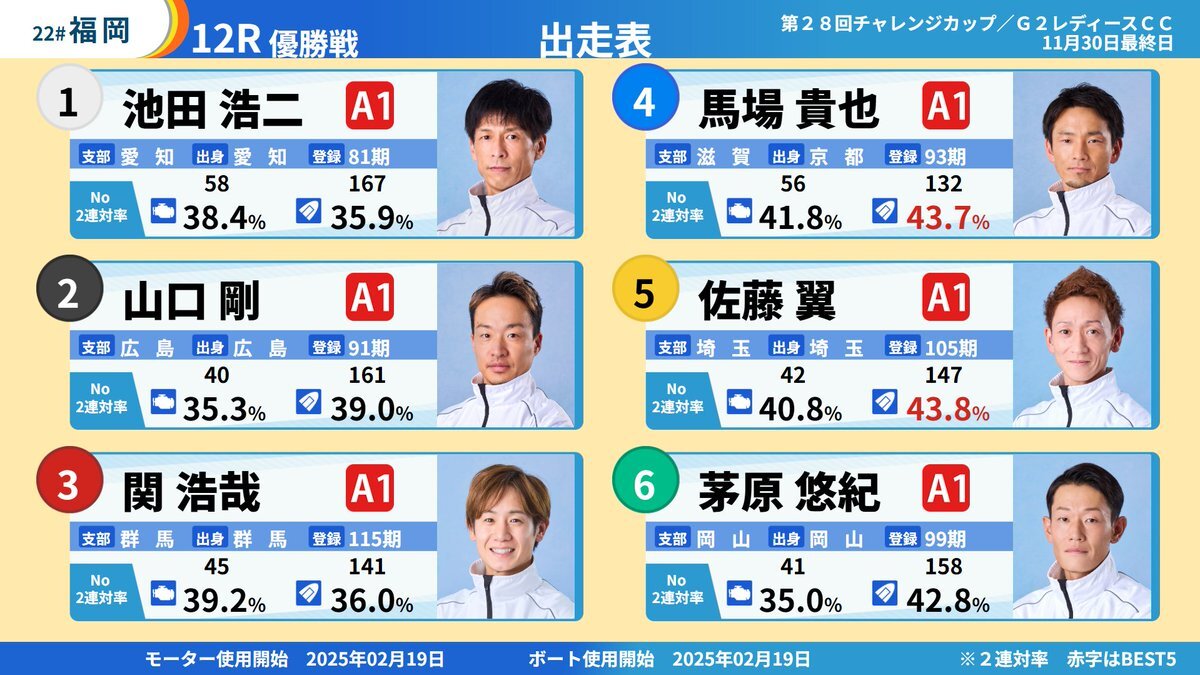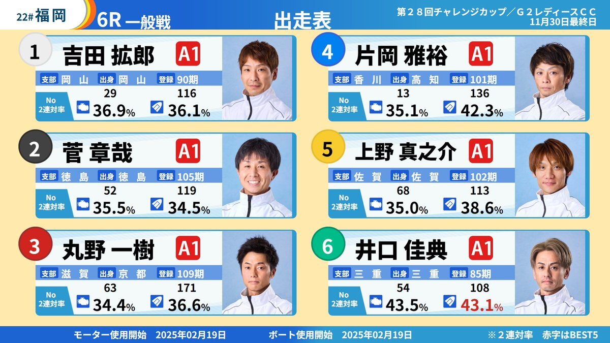 【🏆福岡SG #チャレンジカップ 最終日🏆】 福岡SG 最終日が開幕🚤 優勝戦メンバーを紹介!⚡ 激戦を勝ち抜いた6名が、いよいよ頂点をかけて運命の一走へ🔥 #ボートレース福岡 #チャレンジカップまとめ #持てるスキルフル装備で挑め pic.x.com/7qoRxlrN8c