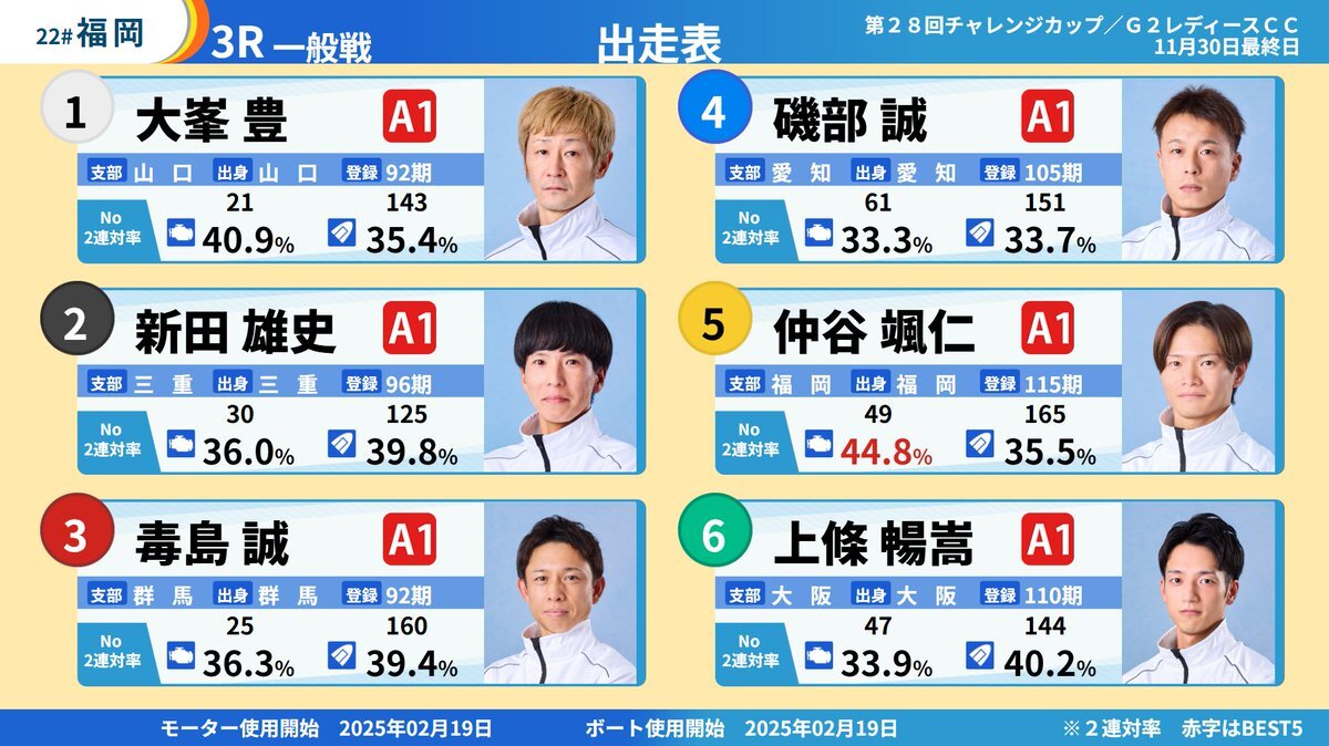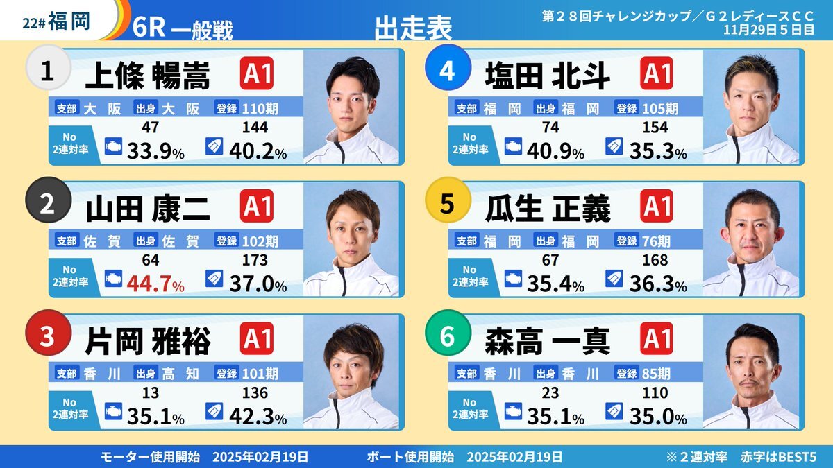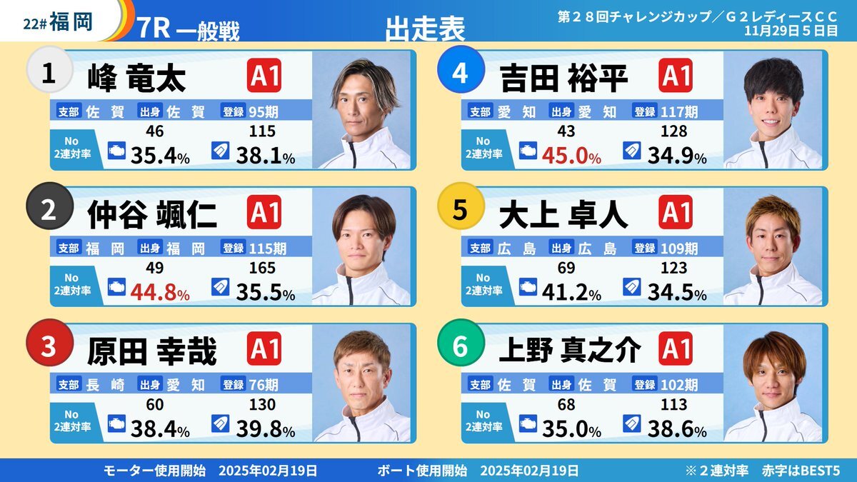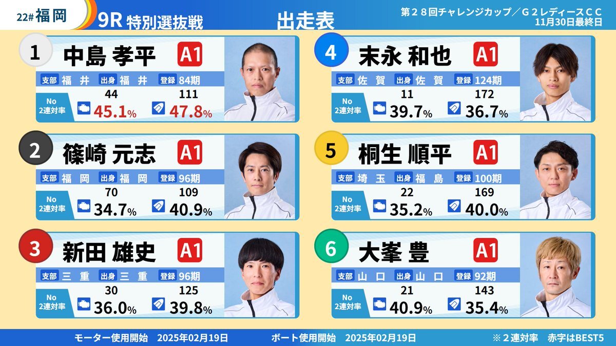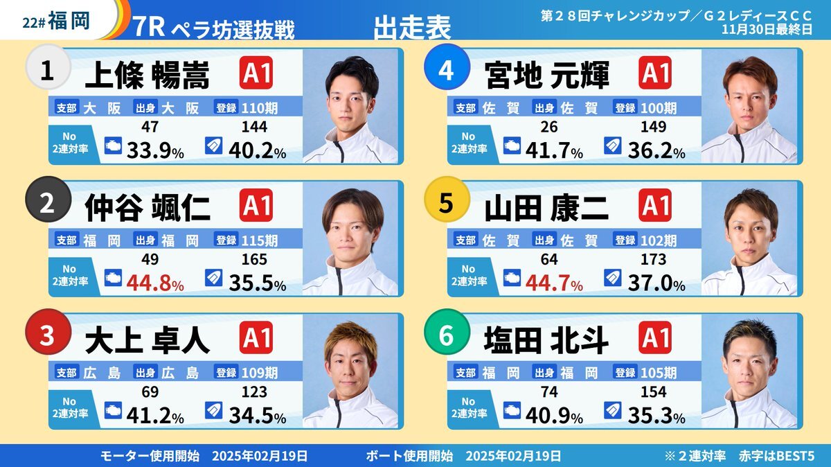 【🏆福岡SG #チャレンジカップ 最終日🏆】 福岡SG 最終日が開幕🚤 優勝戦メンバーを紹介!⚡ 激戦を勝ち抜いた6名が、いよいよ頂点をかけて運命の一走へ🔥 #ボートレース福岡 #チャレンジカップまとめ #持てるスキルフル装備で挑め pic.x.com/7qoRxlrN8c