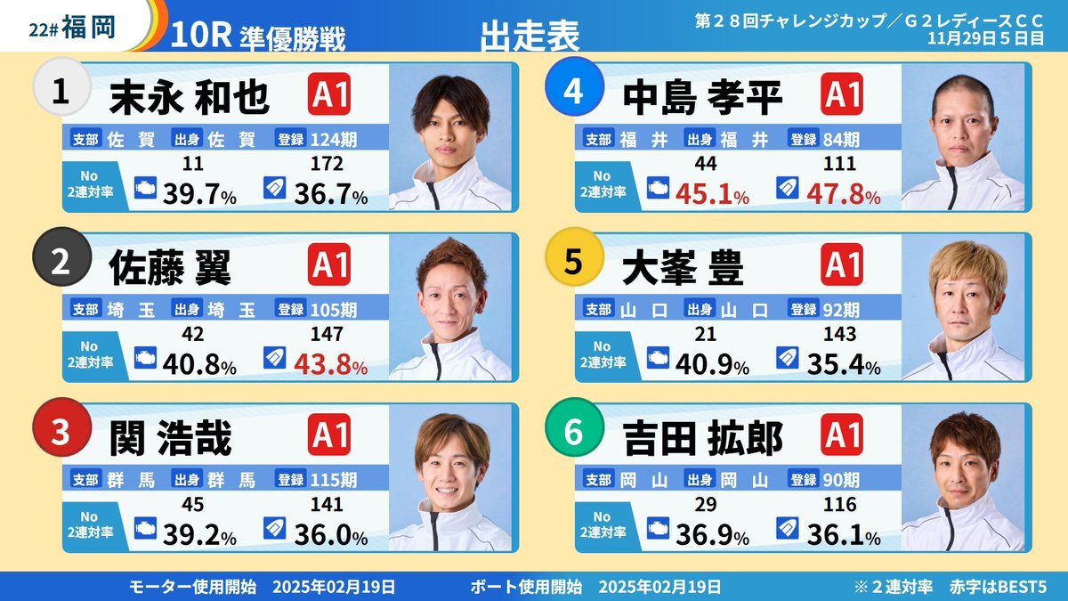 【🏆福岡SG #チャレンジカップ 5日目10R🏆】 舟券予想に役立つ情報をお届け! 福岡10R🔥準優勝戦始まるぞ。心の準備はいいか🔥 🚤出走表 🚤オリジナル展示データ 🚤選手コメント 🚤解説者予想 #ボートレース福岡 #チャレンジカップまとめ #持てるスキルフル装備で挑め pic.x.com/D4OY376JHk
