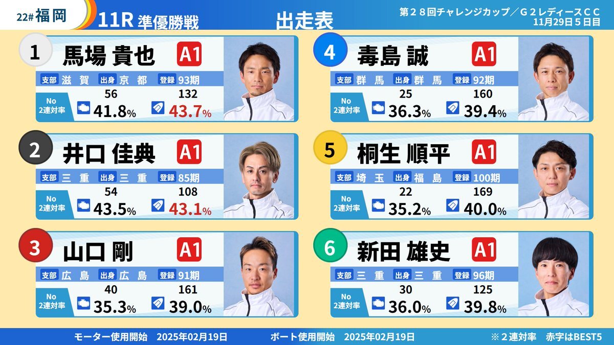 【🏆福岡SG #チャレンジカップ 5日目11R🏆】 舟券予想に役立つ情報をお届け! 福岡11R 準優勝戦🔥レース前の緊張感が、高まっていく‼ 🚤出走表 🚤オリジナル展示データ 🚤選手コメント 🚤解説者予想 #ボートレース福岡 #チャレンジカップまとめ #持てるスキルフル装備で挑め pic.x.com/QxGcvVWf56