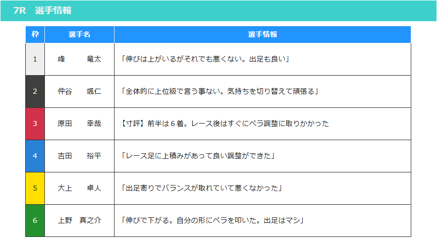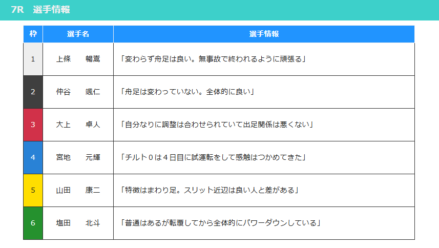 【🏆福岡SG #チャレンジカップ 最終日7R🏆】 舟券予想に役立つ情報をお届け! 福岡7R、これらのデータから導き出すあなたの結論は…?🤔 🚤出走表 🚤オリジナル展示データ 🚤選手コメント 🚤解説者予想 #ボートレース福岡 #チャレンジカップまとめ #持てるスキルフル装備で挑め pic.x.com/4DXTmstWUG
