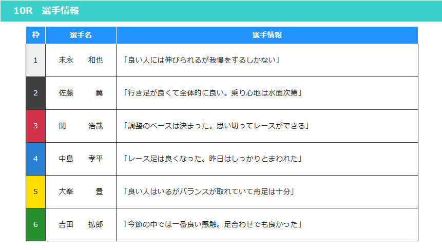 【🏆福岡SG #チャレンジカップ 最終日10R🏆】 舟券予想に役立つ情報をお届け! 福岡10R、モーター気配が良いのは…?👀💡 🚤出走表 🚤オリジナル展示データ 🚤選手コメント 🚤解説者予想 #ボートレース福岡 #チャレンジカップまとめ #持てるスキルフル装備で挑め pic.x.com/HZNgAcTvyl