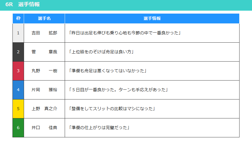 【🏆福岡SG #チャレンジカップ 最終日6R🏆】 舟券予想に役立つ情報をお届け! 福岡6R、あなたの予想を教えて‼ 🚤出走表 🚤オリジナル展示データ 🚤選手コメント 🚤解説者予想 #ボートレース福岡 #チャレンジカップまとめ #持てるスキルフル装備で挑め pic.x.com/kogYKplRis