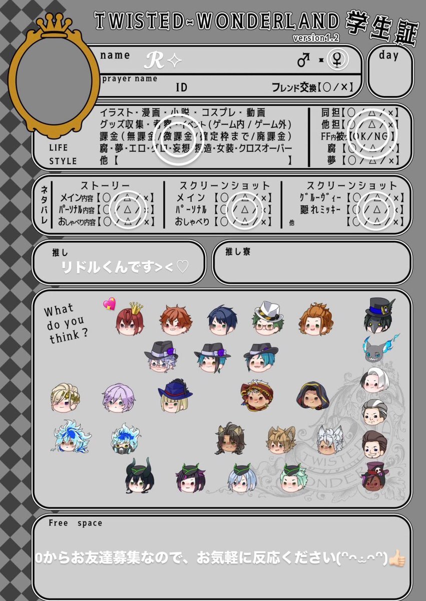 @no_TL まだまだお友達募集中です! 引用元に反応ください☘️ #ツイステ好きさんと繋がりたい #ツイステ好きな人と繋がりたい #ツイステ学生証 x.com/ranamiru_d/sta…